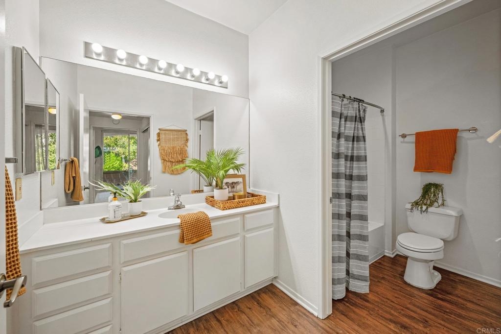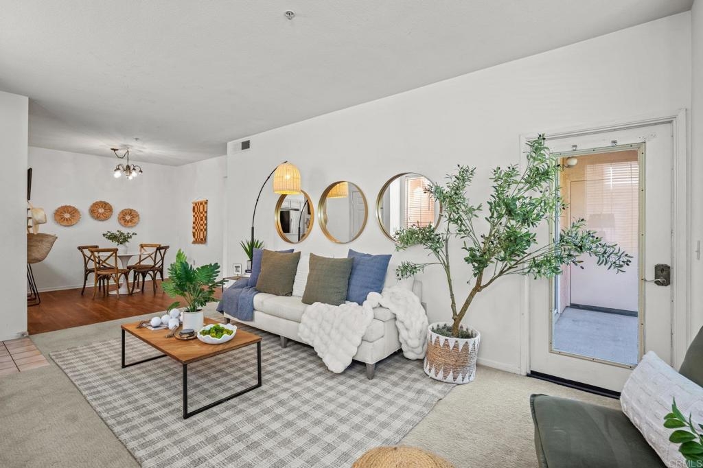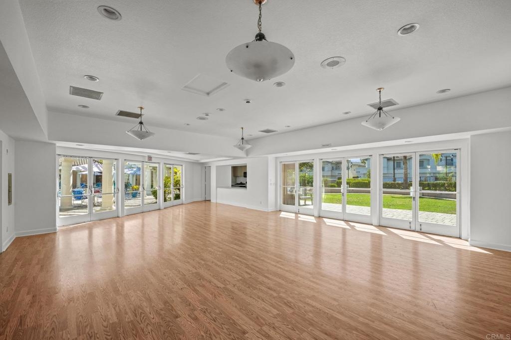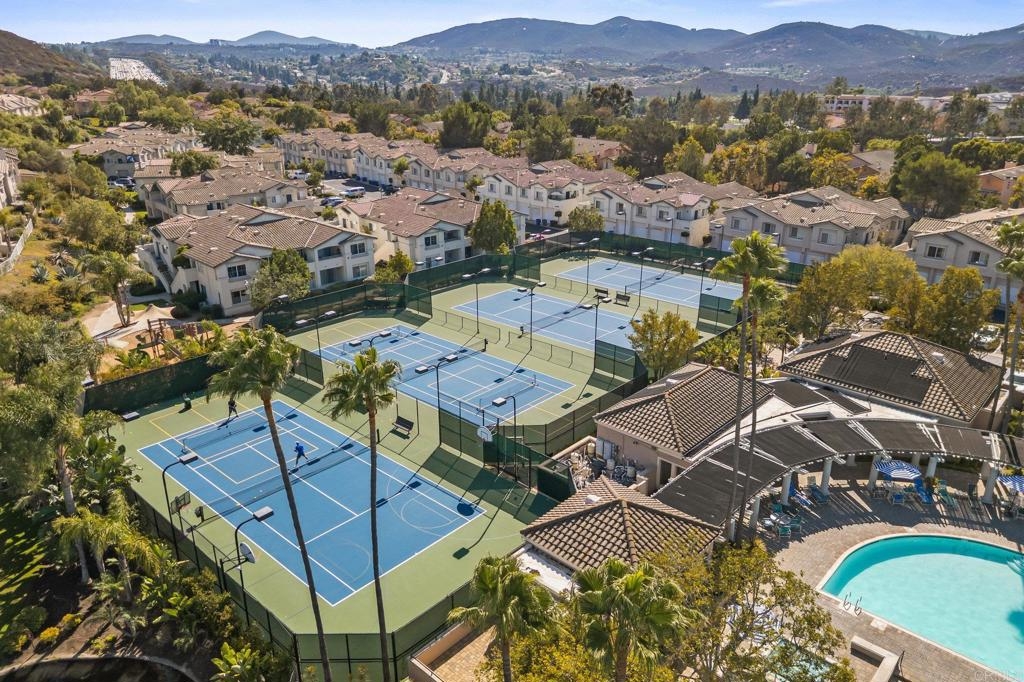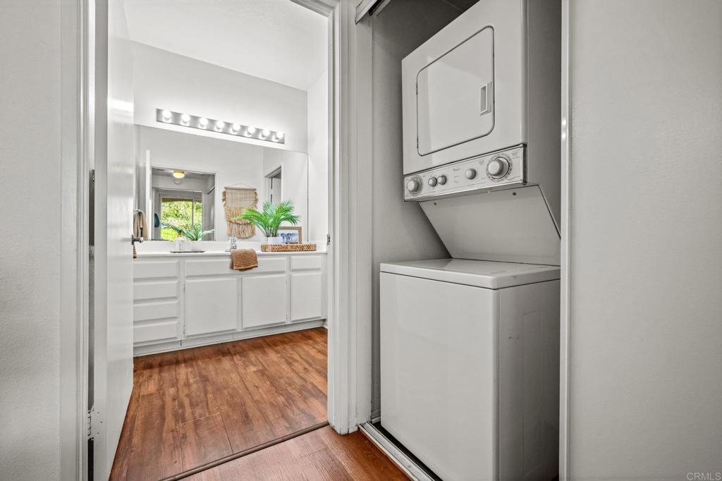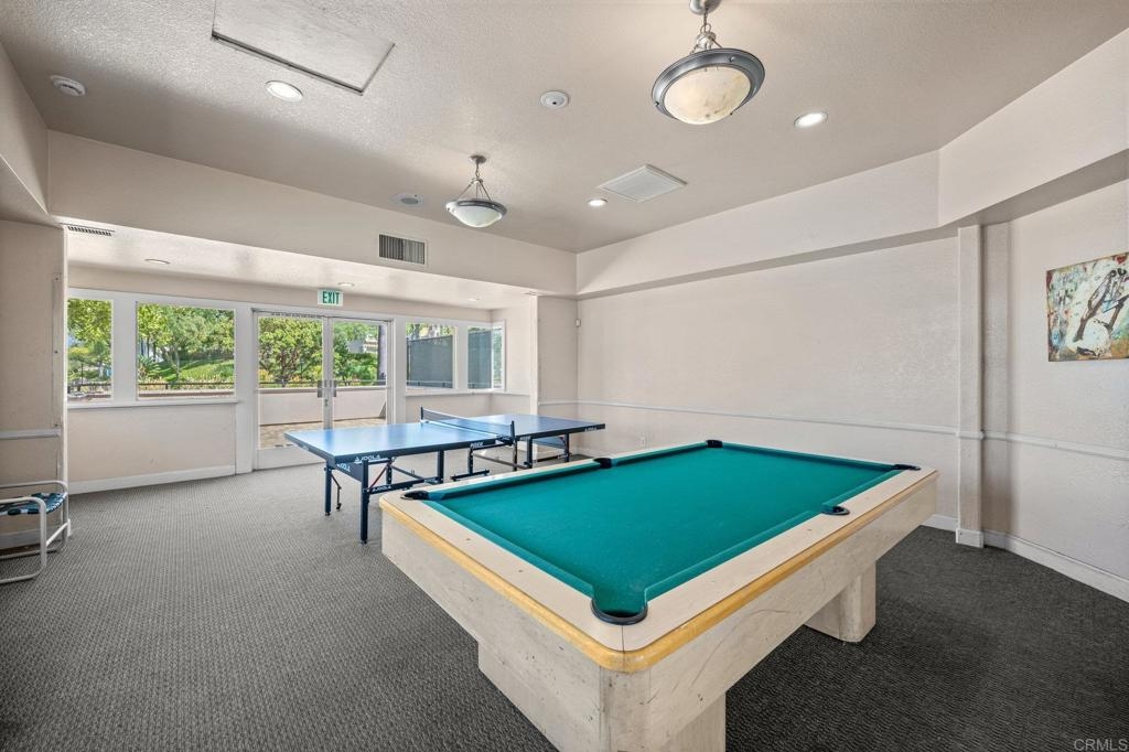 Welcome to Bernardo Vista Del Lago featuring resort-like amenities and secure gated entry. Relax at the pool and spa, exercise at the spacious gym or pickleball/tennis courts and entertain in the game room, clubhouse and extensive outdoor patio. This light and bright corner unit is tucked away from freeway noise in the center of the community with one bedroom, one bathroom, in-unit laundry and A/C. Enter your lush quiet patio overlooking green space from the bedroom or living room French door. Ample patio closet for extra storage. Newer carpet and paint, stainless appliances and generous floorplan. Electric car chargers in the nearby parking area. HOA covers water, trash, sewer, building insurance, maintenance and amenities.