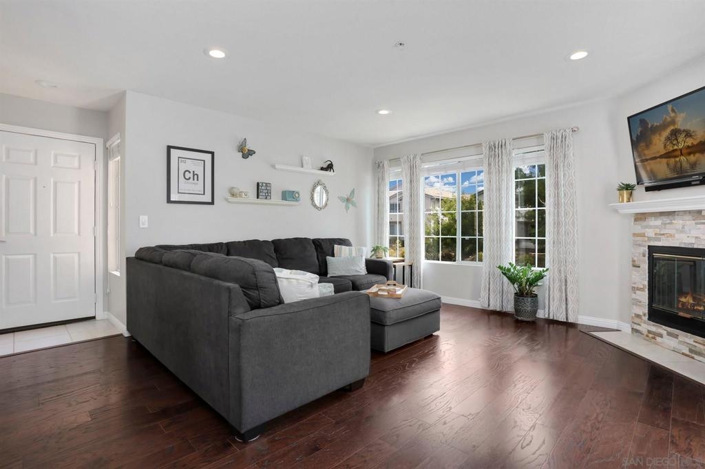 Come enjoy serene mountain views in this stunning unit in the gated community of Morada at Bernardo Vista Del Lago. As you enter you will gaze upon a light and bright open floor plan that allows the living room, dining area and kitchen to flow seamlessly together. The living room enjoys a cozy fireplace and access to a peaceful balcony. The kitchen features crisp, white cabinetry, granite counters accented by a subway tile backsplash, recessed lighting, stainless steel appliances and an eat-at counter. The in-unit laundry closet fits a full-size stackable washer and dryer. Dual primary bedrooms with en suite bathrooms. One assigned carport space will make parking a breeze. Morada offers an exclusive heated pool and spa for its residents. Bernardo Vista del Lago is a guard gated community that offers all residents resort-style amenities such as a clubhouse, two sparkling pools and spas, an exercise room, a recreation room, tennis courts, a tot lot and outdoor BBQs. Quick freeway access will make commuting a breeze. Close to Rancho Bernardo Community Park with ball fields, a dog park, public tennis courts. Surrounded by open space and Lake Hodges providing miles of trails to explore all year long. To see it is to love it! Complex Features: ,,,,,,,, Other Fees: 103 Other Fees Type: , Sewer: Sewer Connected Topography: LL