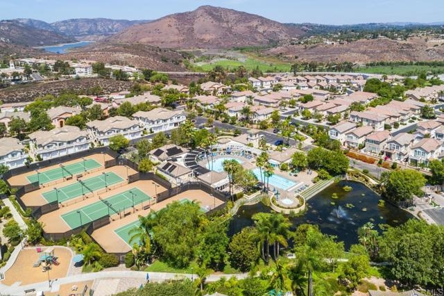 Corner townhouse in the prestigious gated complex of Morada in Vista Del Lago. Quiet location in the complex, close to the Rec. Center and entrance with detached garage and electric vehicle charging stations close by. Freshly updated with new paint, carpet, custom window coverings and more. Popular floorplan with spacious dual master bedrooms upstairs, downstairs living room, dining room and kitchen with lots of light. Laundry closet with storage in the kitchen. downstairs half bath. Large quiet patio. Resort style complex with family pool, Lap pool, 2 spas, 4 lighted tennis courts, Pickle Ball, exercise room, showers, BBQ, banquet facilities, pool table, dog park, and biking/hiking trails close by. Convenient commute to San Diego and other county business centers, restaurants, and shopping.