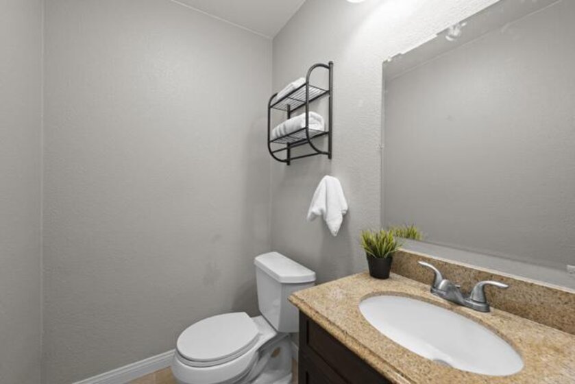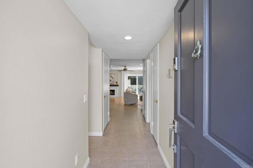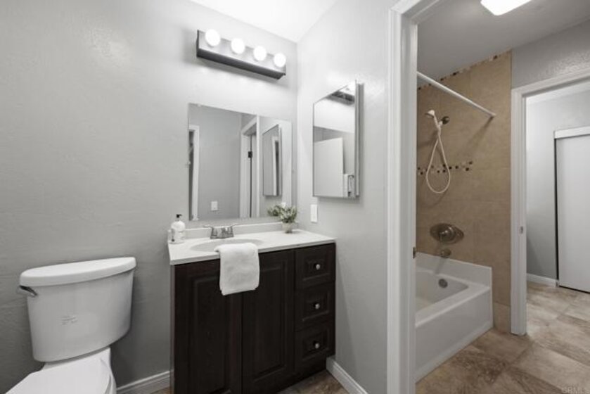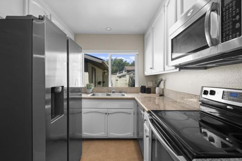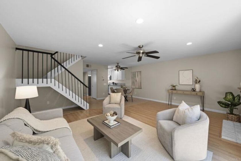This bright and updated townhome in the heart of Rancho Bernardo offers modern finishes, a functional floor plan, private outdoor space, and upgraded features throughout. Highlights include a spacious living room with a fireplace, updated Pergo flooring, a private fenced backyard, central air conditioning, detached single car garage w/ newer garage door & opener, and access to the Westwood Club amenities and the award-winning Poway Unified School District. The kitchen features granite countertops, abundant white cabinetry, a stainless steel sink beneath a window, and tile flooring. Additional upgrades include recessed lighting, stainless steel appliances with a newer refrigerator and dishwasher, and a laundry room with floor-to-ceiling cabinet storage, a window for natural light, and a newer washer and dryer. The adjacent dining and living area includes a ceiling fan, a cozy fireplace, and sliding glass doors that lead directly to the private outdoor patio. Upstairs, the primary suite features Pergo flooring, a ceiling fan, mirrored closet doors, and white French-style doors with glass panes. The attached bathroom includes tile flooring, a separate shower/tub combo with decorative tile accents, dual vanities, and a unique dual-toilet layout with privacy doors on each side of the shower. Both secondary bedrooms are filled with natural light and include Pergo flooring, ceiling fans, and closets with built-in shelving. The stairs include Pergo flooring and custom iron railings, creating an elegant transition between the upper and lower levels. The private backyard features white fencing and offers a low-maintenance space ideal for relaxing or entertaining, with easy access from the main living areas. Located within the award-winning Poway Unified School District (Westwood Elementary, Bernardo Heights Middle School, and Rancho Bernardo High School) and close to shopping, dining, parks, and trails, this home provides the ideal blend of convenience and lifestyle. Residents have access to the Westwood Club amenities, which features a Jr. Olympic swimming pool with children’s pool, a fully equipped fitness center, tennis, pickleball, and racquetball courts, basketball and volleyball courts, baseball and multi-use sports fields, playgrounds with picnic areas, BBQ spaces, and a community center with meeting rooms, an indoor lounge, and a game room.