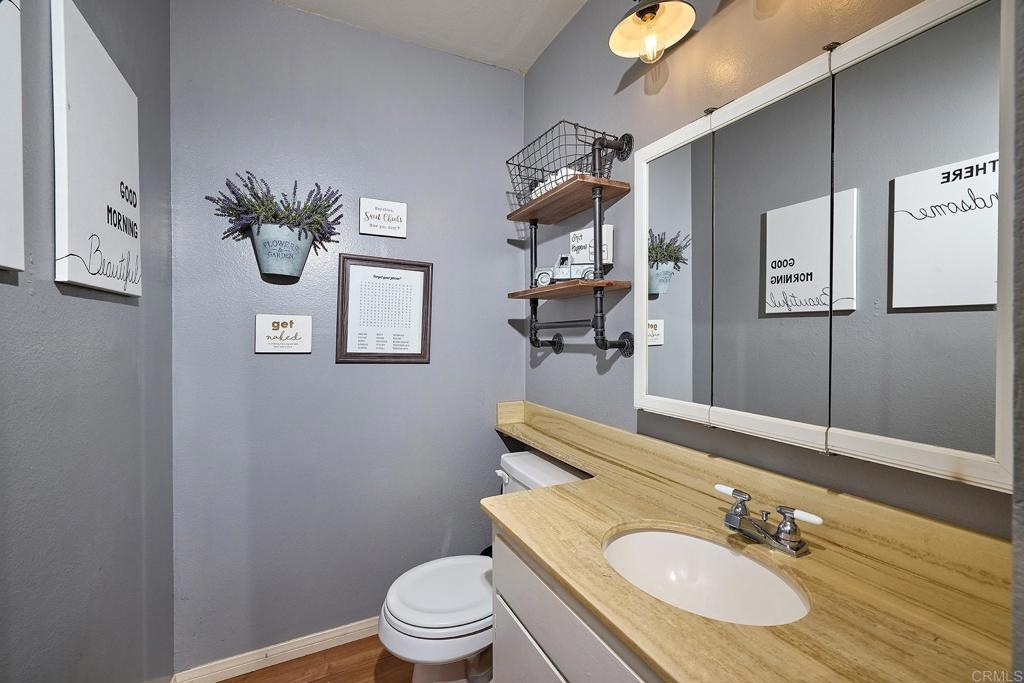 This 2 story townhome, in the highly coveted community of Westwood in Rancho Bernardo and the Poway Unified School District, offers two outdoor spaces. A fully enclosed private front yard offers a lovely patio, astroturf lawn and space to grill. The unit also offers a back patio which opens to a green space ideal for kids and dogs. This unit also features a 1 car garage plus room to park another car in the driveway. The kitchen offers granite counter tops, stainless steel appliances, tile flooring and generous cabinet space for storage. There is also a separate laundry room with ample storage. The main living space is open between the dining room and living room, and features a charming fireplace. There is a half bathroom on the first level, plus multiple closets with copious storage options. The living room is highlighted by sliding glass doors out to the back patio. A quiet, private retreat that opens to community green space. Upstairs there are two lovely updated bathrooms with modern finishes, tile floors and tile shower surrounds. The primary bedroom has an ensuite bathroom with a walk in shower, rain head shower head and double sinks with a marble counter atop a stylish vanity. All the flooring on the second level was recently updated. The main living area, entry way and stairway have been freshly painted. This property is part of the highly desirable community of Westwood. Within walking distance of the Westwood Club and Westwood Elementary. It is also within walking distance of restaurants, such as; Phil's BBQ, Sushi Kami, Elmisa Cafe, The Cork and Craft, Edelweiss Bakery and Instant Replay.