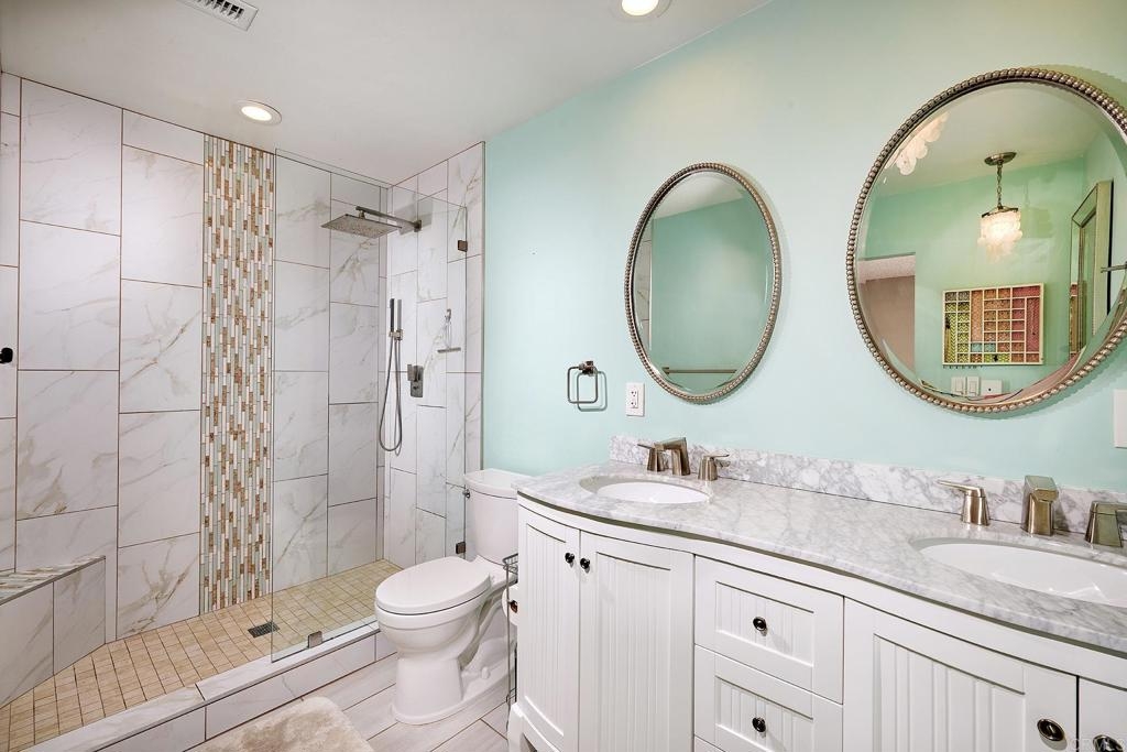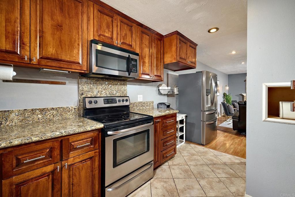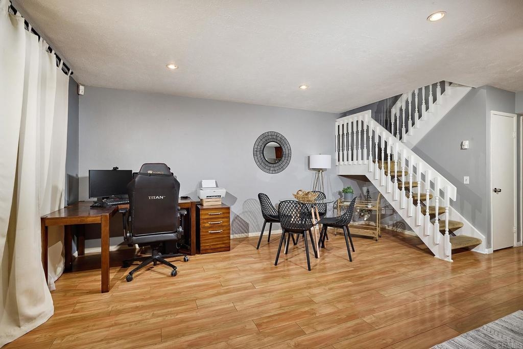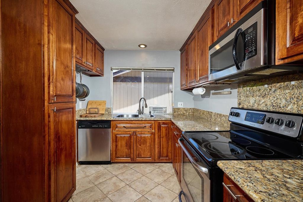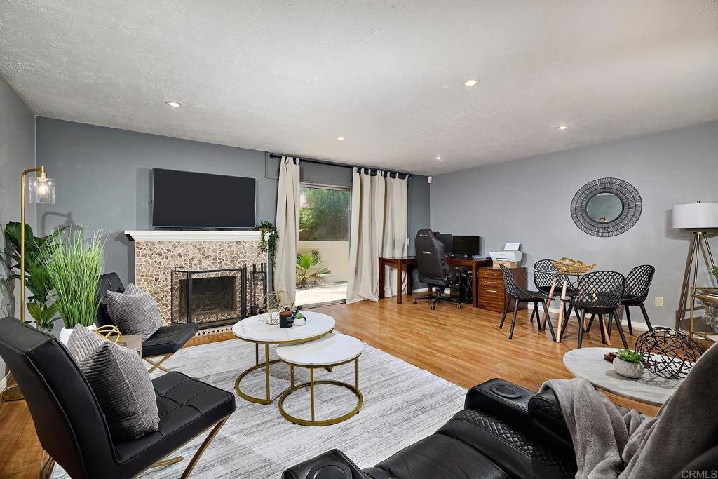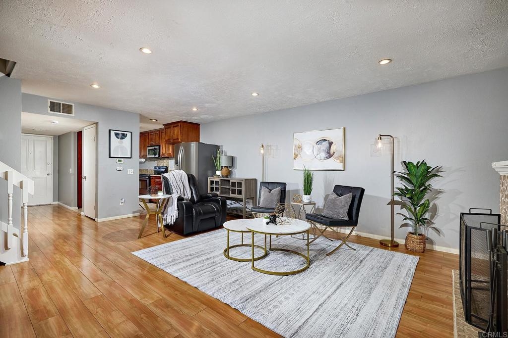 This 2 story townhome, in the highly coveted community of Westwood in Rancho Bernardo and the Poway Unified School District, offers two outdoor spaces. A fully enclosed private front yard offers a lovely patio, astroturf lawn and space to grill. The unit also offers a back patio which opens to a green space ideal for kids and dogs. This unit also features a 1 car garage plus room to park another car in the driveway. The kitchen offers granite counter tops, stainless steel appliances, tile flooring and generous cabinet space for storage. There is also a separate laundry room with ample storage. The main living space is open between the dining room and living room, and features a charming fireplace. There is a half bathroom on the first level, plus multiple closets with copious storage options. The living room is highlighted by sliding glass doors out to the back patio. A quiet, private retreat that opens to community green space. Upstairs there are two lovely updated bathrooms with modern finishes, tile floors and tile shower surrounds. The primary bedroom has an ensuite bathroom with a walk in shower, rain head shower head and double sinks with a marble counter atop a stylish vanity. All the flooring on the second level was recently updated. The main living area, entry way and stairway have been freshly painted. This property is part of the highly desirable community of Westwood. Within walking distance of the Westwood Club and Westwood Elementary. It is also within walking distance of restaurants, such as; Phil's BBQ, Sushi Kami, Elmisa Cafe, The Cork and Craft, Edelweiss Bakery and Instant Replay.