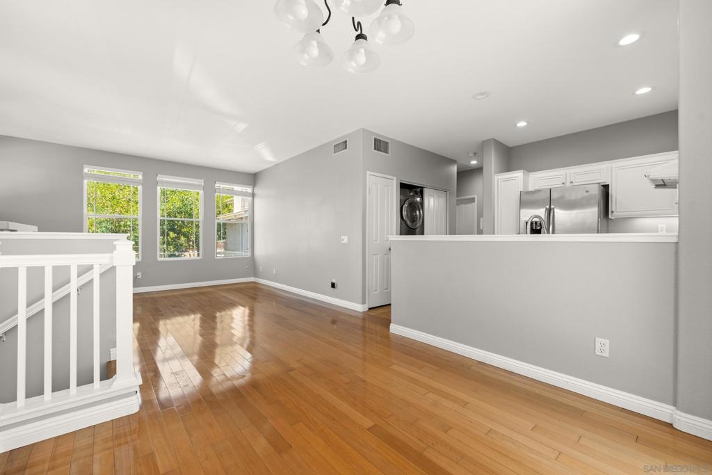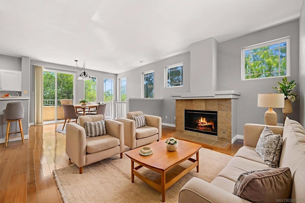 Discover this stunning 2 bedroom, 2 bath townhome tucked away in the sought-after Windham community of Carmel Mountain. This light and bright end-unit offers incredible privacy with no neighbors behind and sweeping views of trees, mountains, and a soon to be greenbelt. Inside, you'll find a thoughtfully designed layout featuring large windows that flood the space with natural light, an inviting living room with a cozy fireplace, and high-end finishes throughout. The updated kitchen boasts premium appliances and opens seamlessly to the living and dining area—perfect for everyday living and entertaining. Enjoy morning coffee or evening sunsets from your private patio surrounded by nature. The spacious primary suite includes multiple large closets and en-suite bath. A full-size washer and dryer, 2-car attached garage, and ample storage add convenience. Walk to local favorites like Starbucks, Champagne Bakery, the library, and Ralphs. Just minutes to Costco, Home Depot, and only 3 miles to the new 67.5-acre Apple campus. The perfect combination of comfort, location, and lifestyle! Discover this stunning 2 bedroom, 2 bath townhome tucked away in the sought-after Windham community of Carmel Mountain. This light and bright end-unit offers incredible privacy with no neighbors behind and sweeping views of trees, mountains, and a developing greenbelt. Inside, you'll find a thoughtfully designed layout featuring large windows that flood the space with natural light, an inviting living room with a cozy fireplace, and high-end finishes throughout. The updated kitchen boasts premium appliances and opens seamlessly to the living and dining area—perfect for everyday living and entertaining. Enjoy morning coffee or evening sunsets from your private patio surrounded by nature. The spacious primary suite includes multiple large closets and en-suite bath. A full-size washer and dryer, 2-car attached garage, and ample storage add convenience. Walk to local favorites like Starbucks, Champagne Bakery, the library, and Ralphs. Just minutes to Costco, Home Depot, and only 3 miles to the new 67.5-acre Apple campus. The perfect combination of comfort, location, and lifestyle!