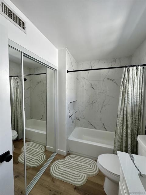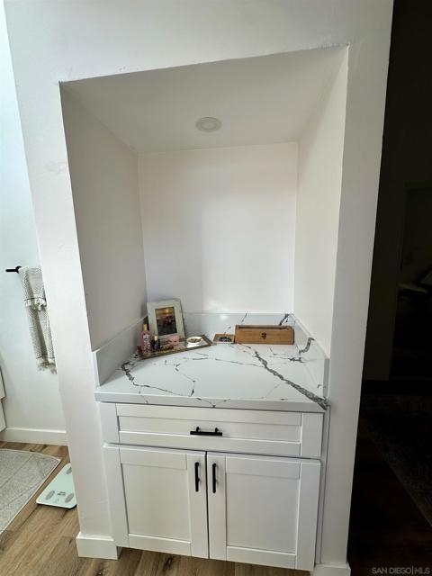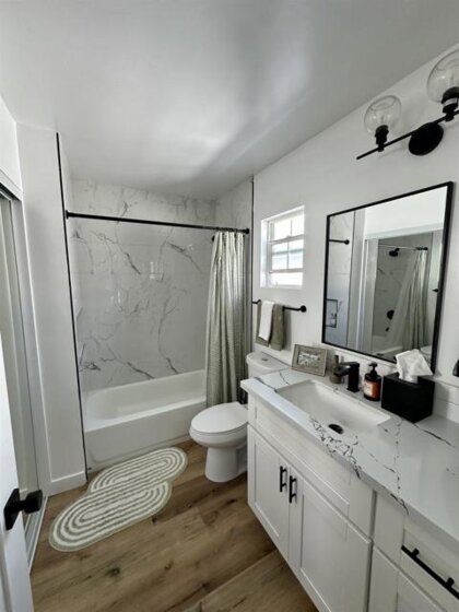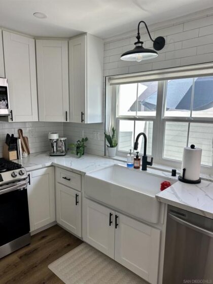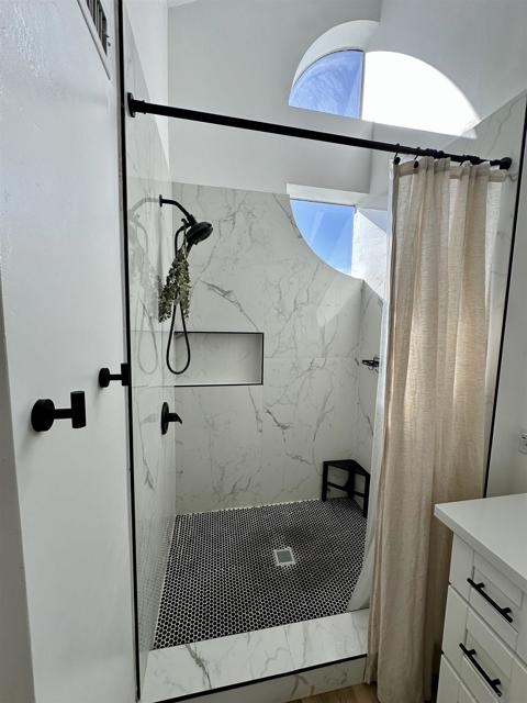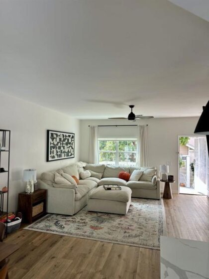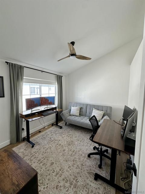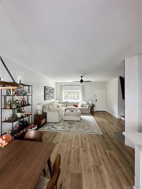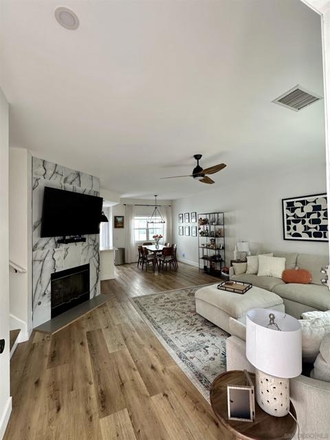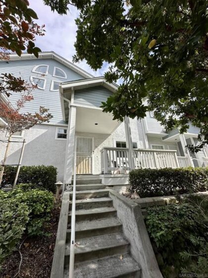 Live your best life at Scripps Townhomes! Imagine sitting on the idyllic rocking chair front porch with your favorite beverage soaking in the gorgeous San Diego weather all year round. Enter to gaze upon soaring vaulted ceilings over an open floor plan adorned by vinyl plank flooring throughout. Seamless daily living will be yours as the living room, dining room and kitchen flow effortlessly together. A stunning fireplace in the living room will be your favorite place to relax and unwind. New Windows, Light filtering shades were added downstairs to keep the interior temperature comfortable. In 2022, the kitchen was re-imagined to feature crisp, white cabinetry, new stainless steel appliances, quartz countertops and modern accent lighting. Dine al fresco on the back patio. The half bath on the main level has been upgraded with modern flair. Both bedrooms are on the upper level, have upgraded ensuite bathrooms and recently had high-quality black out shades added. A built-in work center in the upstairs landing will help you stay productive when at home. The attached two car garage makes parking a breeze and a ceiling storage rack helps with the holiday decorations. 2023 Full size stacked washer/dryer conveys. A new roof was installed in 2021-2022 and the unit was fumigated in 2023. Scripps Townhomes is a serene, park-like community offering its residents tennis courts, a sparkling pool and a park. Great schools, shopping, dining and entertainment venues are nearby. This truly is an opportunity you do not want to miss!