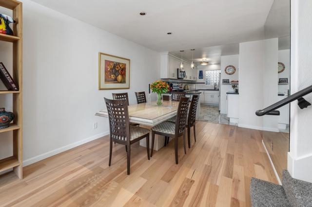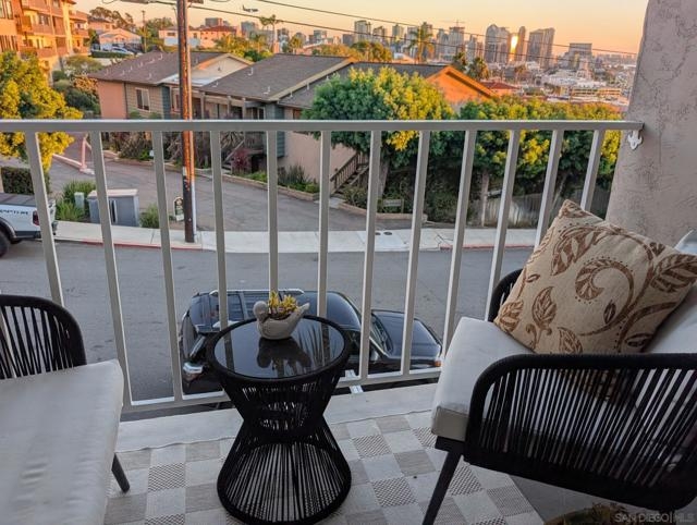 This stunning townhome checks all the boxes! Priced $35,000 below the most recent comp in the complex. Bay & downtown views. Charming South Mission Hills/Mid-Town pocket neighborhood. Great walkability to Little Italy & North Mission Hills. New hickory floors & paint in living areas. 175+ bottle wine room plus 250 bottle Vino Temp wine fridge. Remodeled kitchen with stainless appliances & quartz countertops. Formal dining area perfect for entertaining. Third bedroom/den adjacent to the living area has French doors leading to private deck of Ipe hardwood. Laundry closet with stacked washer/dryer. Dramatic staircase accented by large skylight to the Dual Master Suites creates an abundance of light to both the living areas and the stairwell. The Master Suites are separated by stairwell and afford maximum privacy. Wonderful view deck off the larger Master Suite. New roof 2024, exterior painted 2022. Complex re-piped 2021 with copper plumbing. Attached 2 car garage with direct access to unit and ample built-in storage. HOA fees were increased in March 2025 to build up the reserves. Truly an exceptional property in great location with easy access to beaches, downtown, airport, & freeway.