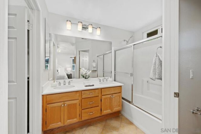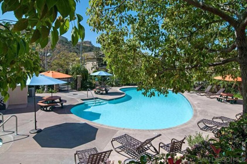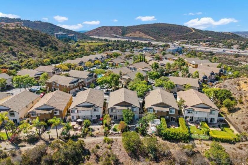 Don’t miss this opportunity to own a beautiful and immaculate 3-bedroom, 2.5-bath townhome, ideally situated in a desirable location at the back of the complex. Enjoy peaceful views from your private backyard, complete with a charming stone patio—perfect for relaxing or entertaining. The home features a spacious living area, separate dining room, and a pristine kitchen with abundant storage and a refrigerator included. Upstairs, the primary suite offers a walk-in closet, accompanied by two generous secondary bedrooms. Notable upgrades include wide plank hardwood flooring, ceiling fans, wood blinds, and central air. The attached 2-car garage includes a washer and dryer. The well-maintained community offers a pool, spa, and small playground for residents to enjoy. Conveniently located near restaurants, grocery stores, community parks, and Lake Miramar is just a short distance away.