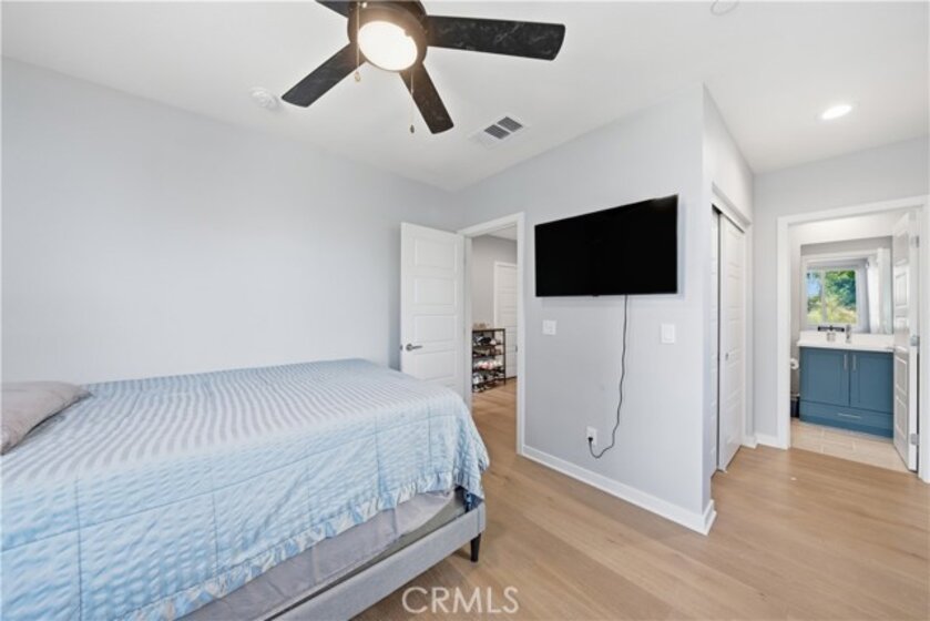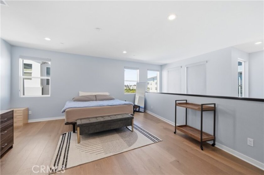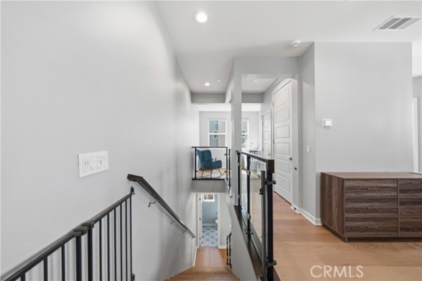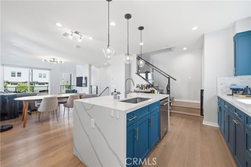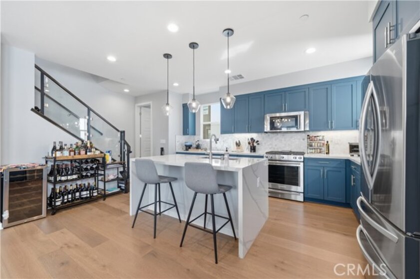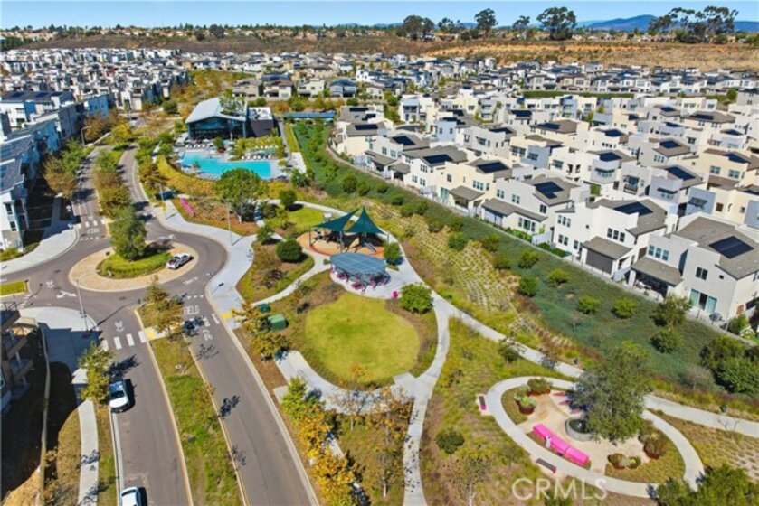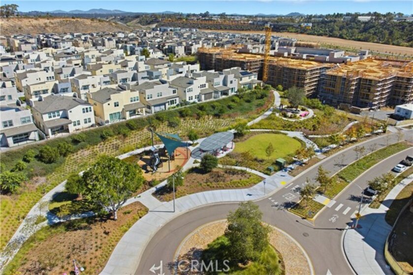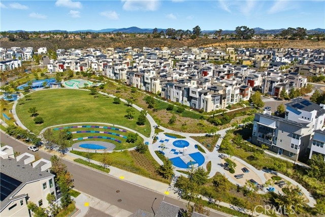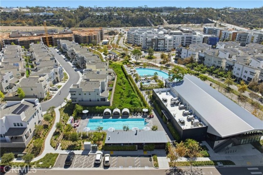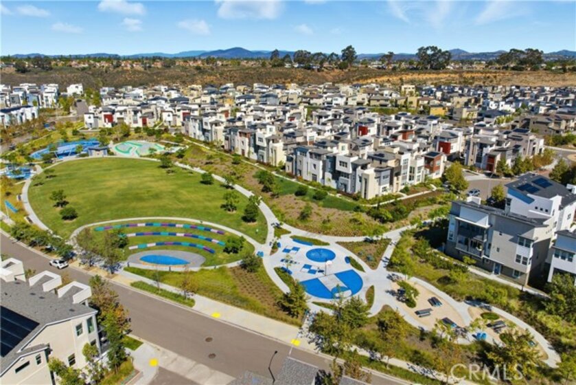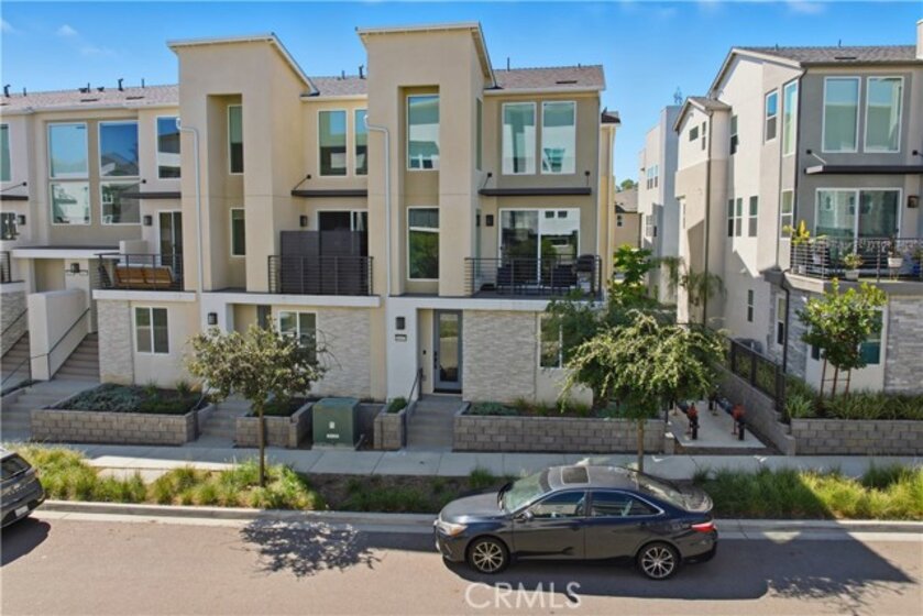 Beautifully upgraded 2 bedroom, 2.5 bathroom light and bright end unit, with quartz waterfall counter tops, home automation including blinds on third story, upgraded engineered wood flooring and Paid Off Solar! Designer interior paint, and elegant glass railings and surround sound that enhance the home’s modern aesthetic. The gourmet kitchen features a dual waterfall-edge quartz countertop, upgraded pull-out drawers, and premium finishes that make it a true showpiece. The downstairs bedroom and full bathroom with direct two car garage access, are ideal for guests or a home office. Upstairs, you’ll find a versatile loft with bonus space off the bedroom, perfect for a playroom, media area, nursery or private retreat. The automated window blinds on the third story offer both convenience and sophistication. Every detail has been thoughtfully designed to exceed model-home quality—this home is truly better than the model in one of San Diego’s most sought-after master-planned communities - 3 Roots. This modern residence offers the perfect blend of luxury, comfort, and energy efficiency. Enjoy resort-style living with community amenities that include sparkling pools, a state-of-the-art gym, parks, and a state of the art community center.
