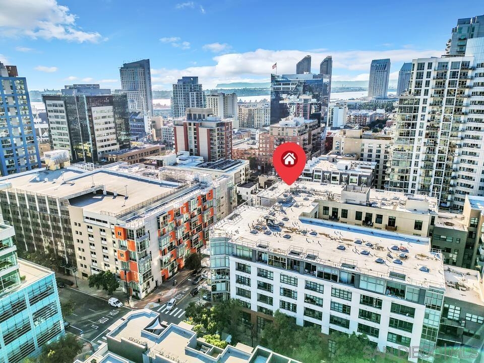 One-of-a-kind southwest corner loft at M2i featuring panoramic city views, floor-to-ceiling windows, and an expansive open layout. The flexible floor plan was designed without enclosing the second bedroom, creating a generous flow of space filled with natural light. The owners have explored building out the second bedroom, and if a buyer prefers a traditional two-bedroom layout, the sellers are open to covering the cost of this option. The home was upgraded from top to bottom. The kitchen and baths feature designer quartzite counters and sleek porcelain tile. The living areas offer authentic hardwood floors, upgraded fixtures, and custom window coverings. Central AC provides strong climate control throughout the unit. The layout supports multiple uses including a home office or guest space. The building offers fast wiring options for remote work. Oversized windows bring in natural light throughout the day and enhance the corner exposure. Residents enjoy top-tier amenities: a fully updated fitness center with brand-new equipment, a lush courtyard, and a large rooftop deck with BBQs and a fire pit - perfect for entertaining. The home includes two reserved underground parking spaces, and the HOA supports EV charger installation. The location is one of the best in East Village. The building sits 2 blocks from Petco Park and close to restaurants, coffee shops, fitness studios, and the waterfront. Walk Score, Transit Score, and Bike Score are among the highest in Downtown, which attracts buyers who want a connected and walkable lifestyle.