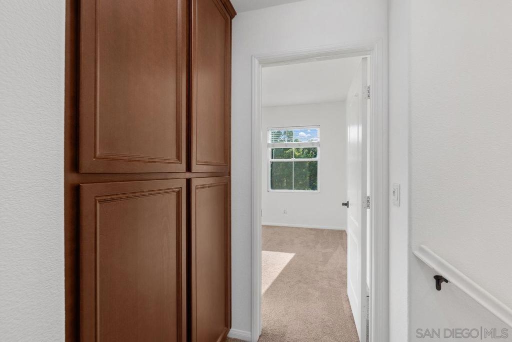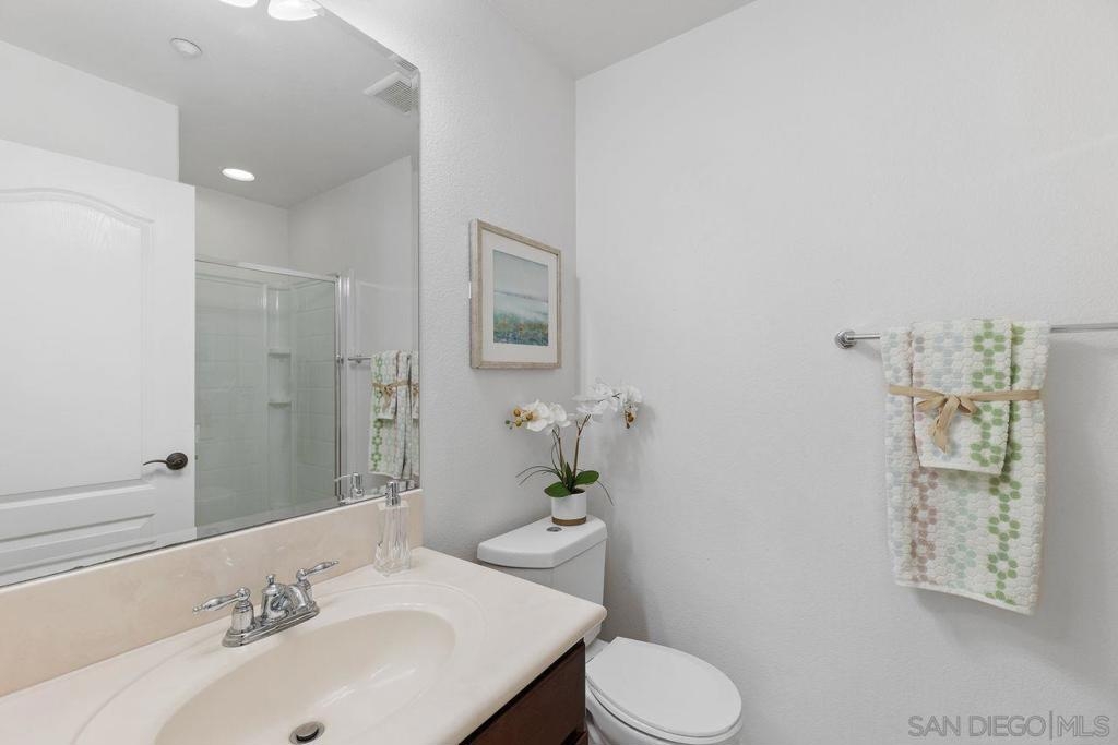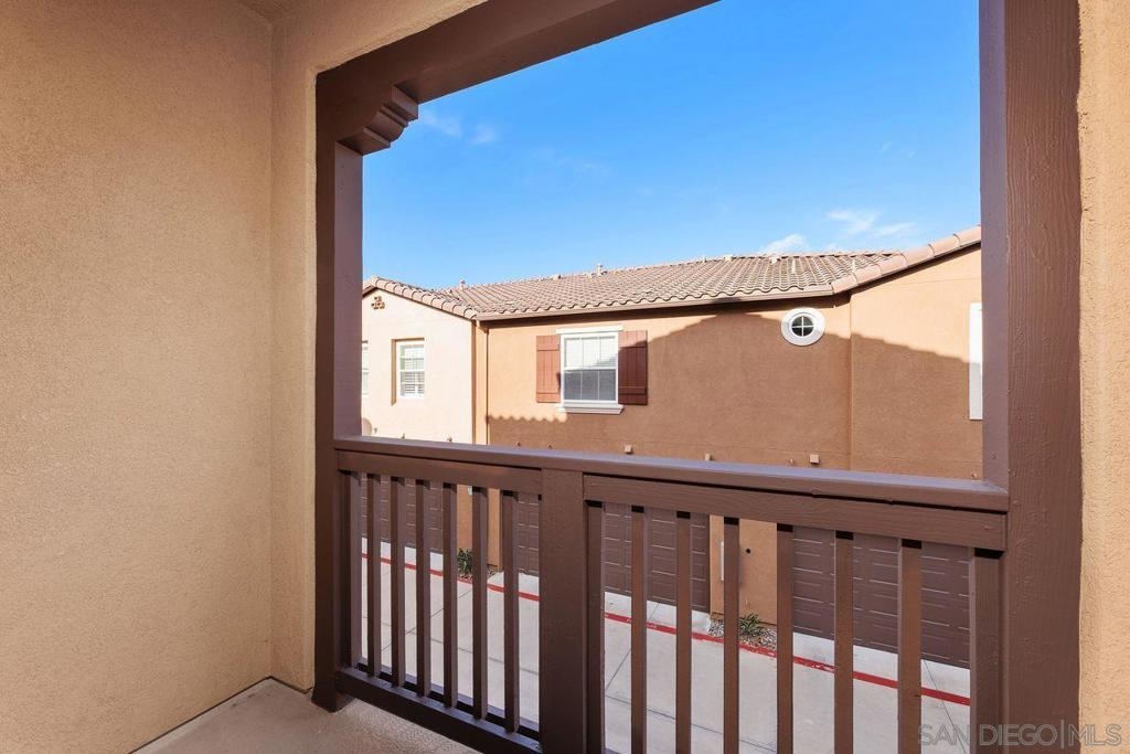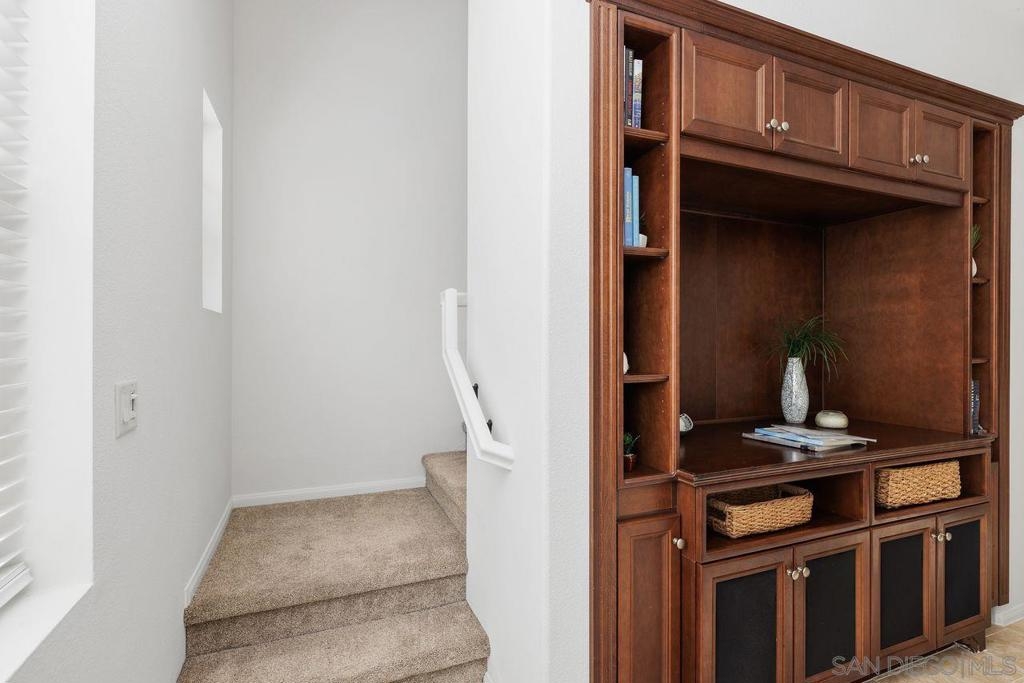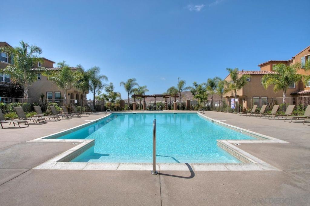 Welcome to this thoughtfully designed and centrally located gem in Gianni at 4S Ranch. Nestled behind a peaceful greenbelt, this 3-story townhome combines convenience and privacy. The entry-level features a bedroom with ensuite bath, a laundry room with built-in cabinetry, and direct access to the 2-car attached garage. Heading up the stairs, past the powder room, you will find the bright and inviting family living spaces. The integrated kitchen and dining area with a private balcony offers a seamless space for entertaining family and guest. The kitchen is a chef’s delight with rich dark wood cabinets, black granite countertops, stainless steel appliances, and durable tiled flooring. The adjacent family room provides a generous gathering area centered around a built-in media niche. On the third level, you’ll find two spacious bedrooms with en-suite bathrooms. The bathrooms showcase sleek tile flooring, chrome fixtures, white countertops, and dark wood cabinetry for a timeless look. Additional features include HVAC, fire sprinklers, and a reverse osmosis water filtration system under the kitchen sink. Gianni at 4S Ranch is a highly sought-after community, centrally located near parks, shopping, dining, hiking, and biking trails. Residents enjoy a host of HOA amenities, including a community pool, spa, BBQ area, and ample open spaces. Located within the award-winning Poway Unified school district, don’t miss this opportunity to call Gianni your home.