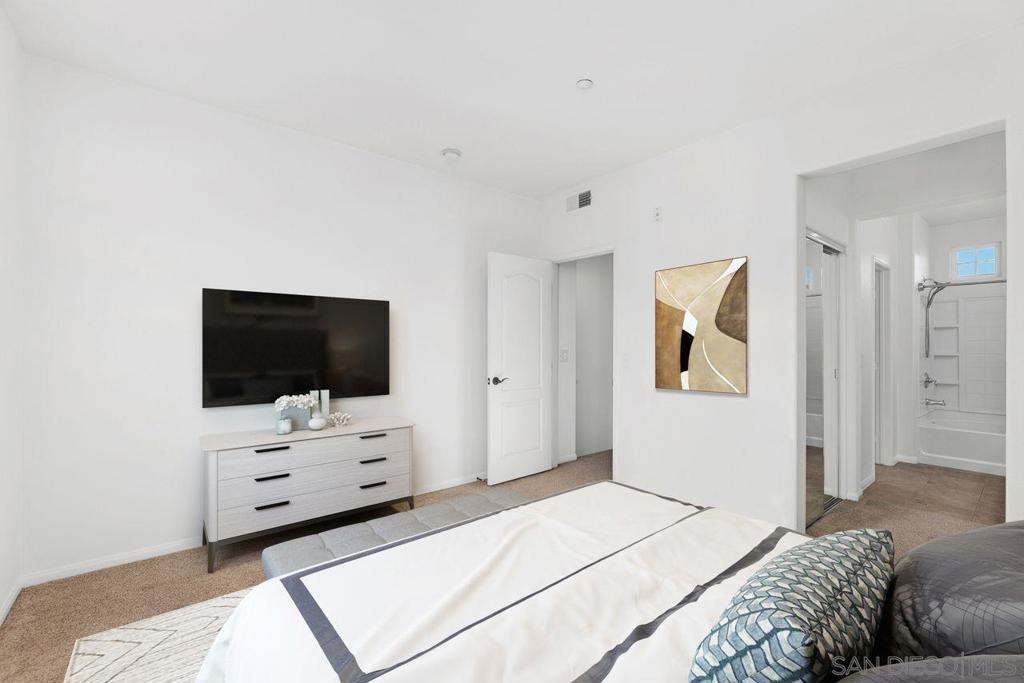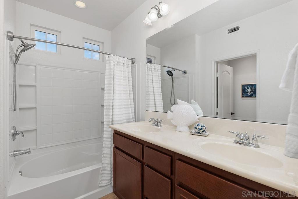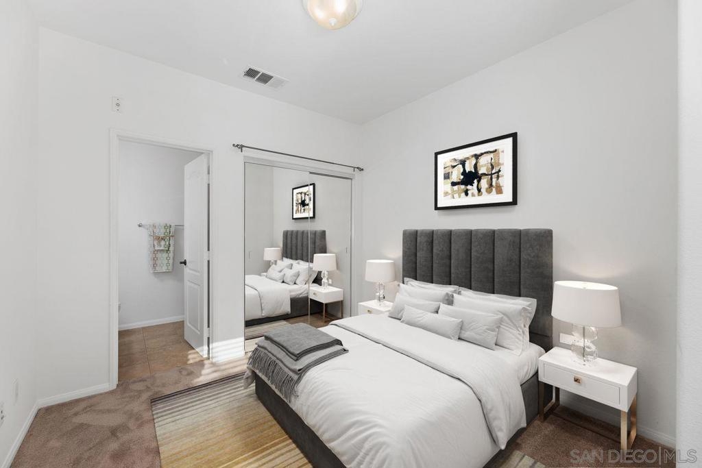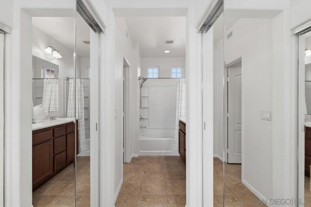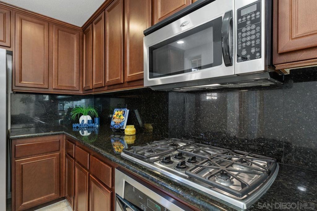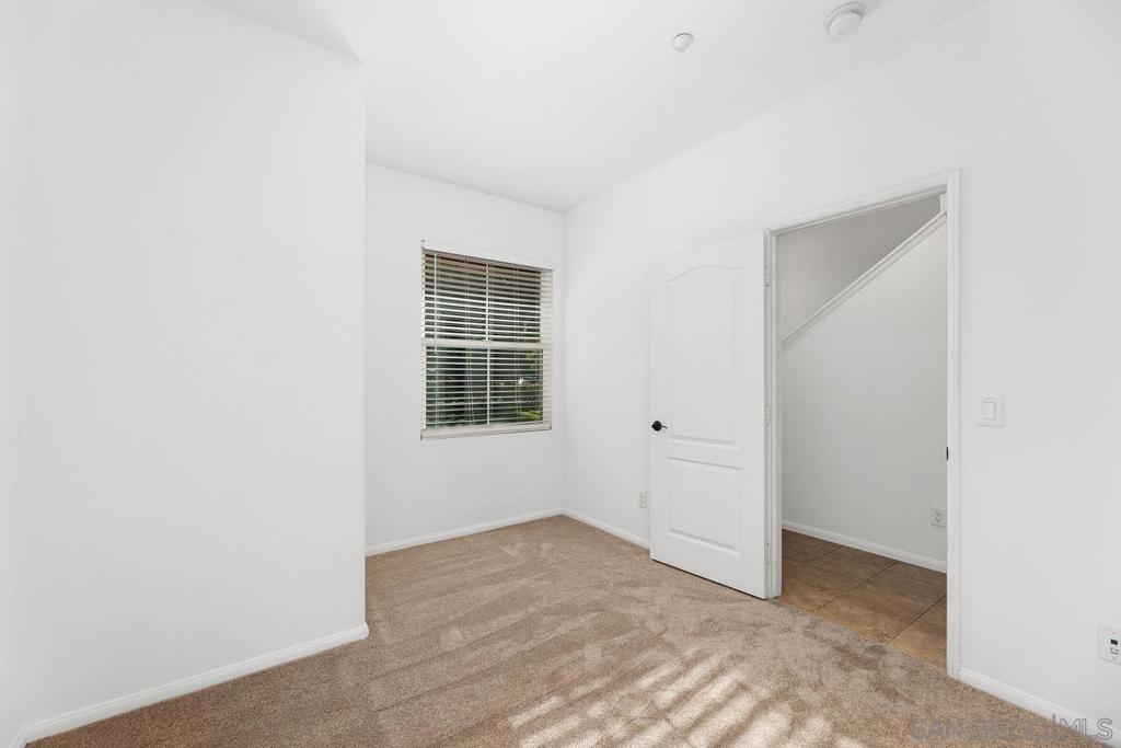 Welcome to this thoughtfully designed and centrally located gem in Gianni at 4S Ranch. Nestled behind a peaceful greenbelt, this 3-story townhome combines convenience and privacy. The entry-level features a bedroom with ensuite bath, a laundry room with built-in cabinetry, and direct access to the 2-car attached garage. Heading up the stairs, past the powder room, you will find the bright and inviting family living spaces. The integrated kitchen and dining area with a private balcony offers a seamless space for entertaining family and guest. The kitchen is a chef’s delight with rich dark wood cabinets, black granite countertops, stainless steel appliances, and durable tiled flooring. The adjacent family room provides a generous gathering area centered around a built-in media niche. On the third level, you’ll find two spacious bedrooms with en-suite bathrooms. The bathrooms showcase sleek tile flooring, chrome fixtures, white countertops, and dark wood cabinetry for a timeless look. Additional features include HVAC, fire sprinklers, and a reverse osmosis water filtration system under the kitchen sink. Gianni at 4S Ranch is a highly sought-after community, centrally located near parks, shopping, dining, hiking, and biking trails. Residents enjoy a host of HOA amenities, including a community pool, spa, BBQ area, and ample open spaces. Located within the award-winning Poway Unified school district, don’t miss this opportunity to call Gianni your home.