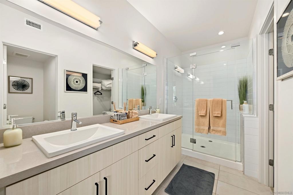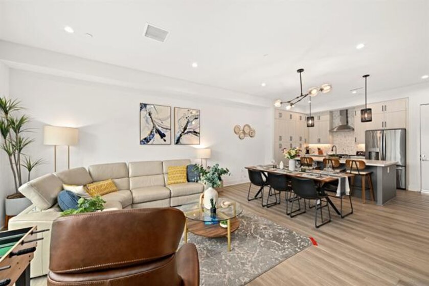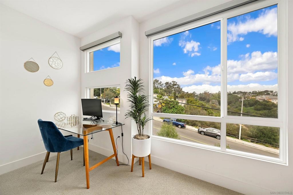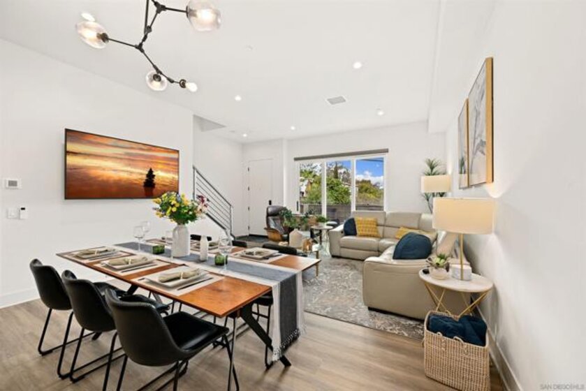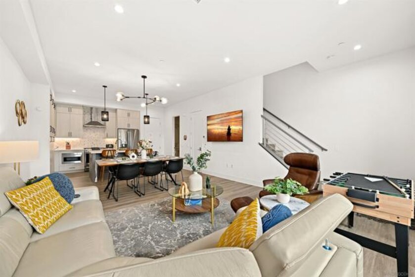 Highly acclaimed Craft by CityMark a luxurious two-story townhome ideally located in a quieter pocket just moments from the energy of Downtown San Diego. Bike to downtown and Padres games, or enjoy the vibrant dining and culture of Golden Hill and South Park—you're near all the action while still enjoying a peaceful residential setting. This move-in ready home showcases voluminous ceilings throughout, including an impressive 12-foot ceiling in the main living area, along with laminate wood flooring and luxury finishes. The thoughtfully designed layout features all bedrooms on the second floor, including a large primary suite, and an in-unit laundry area conveniently located on the same level. Enjoy seamless living with direct access from the two-car garage to the main living area, plus two private outdoor spaces. The highlight is the expansive rooftop view deck with stunning city, bay, and sunset views—perfect for entertaining or relaxing at golden hour. As an added bonus this home can come fully furnished! Situated across from the 32nd Street Canyon trailhead and just half a mile from Downtown, this exceptional townhome offers the perfect blend of urban convenience and neighborhood charm. VA buyers are welcome.