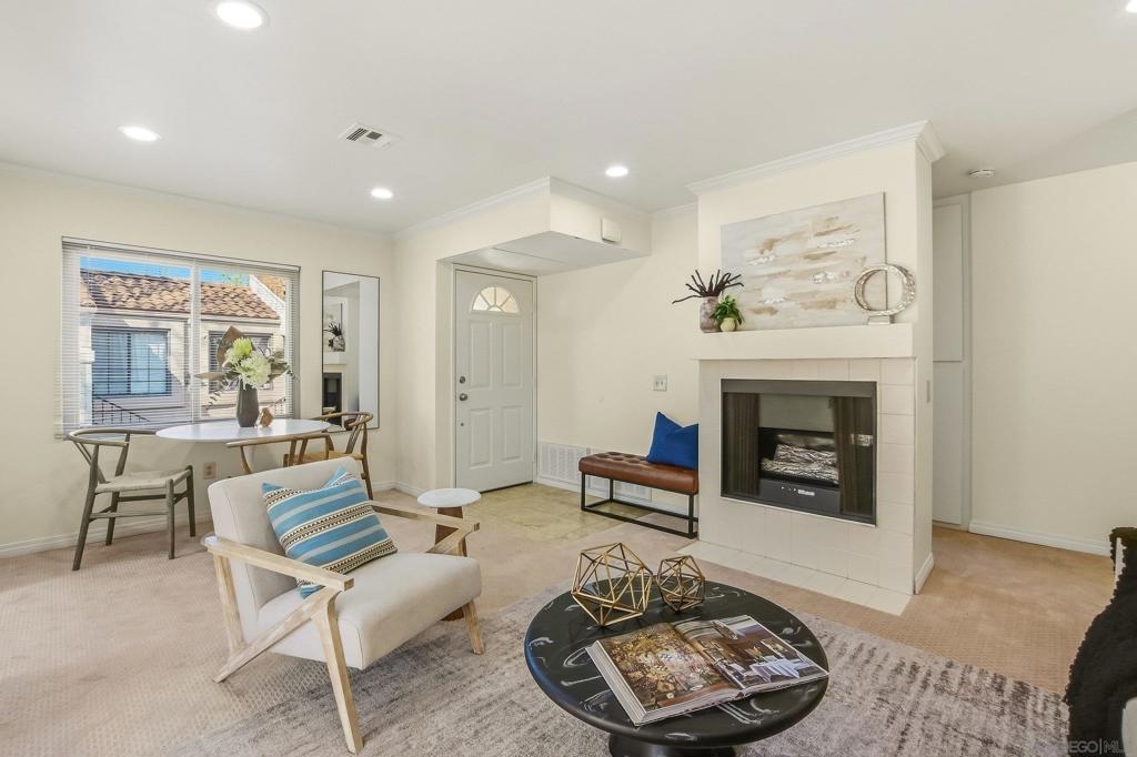 Welcome to this beautifully improved 2-bedroom, 2-bath condo located in the desirable High Ridge community in the heart of Mira Mesa. This home features brand new kitchen cabinets with appliances that are only a few years old. Enjoy fresh new carpet throughout and stylish luxury vinyl flooring in the kitchen and bathrooms. The living area includes a cozy fireplace, perfect for relaxing evenings at home. Conveniently located just 0.6 miles from a nearby shopping center, you’ll have easy access to dining, shopping, and everyday essentials. Don’t miss this opportunity to own a home in one of Mira Mesa’s most sought-after communities!
