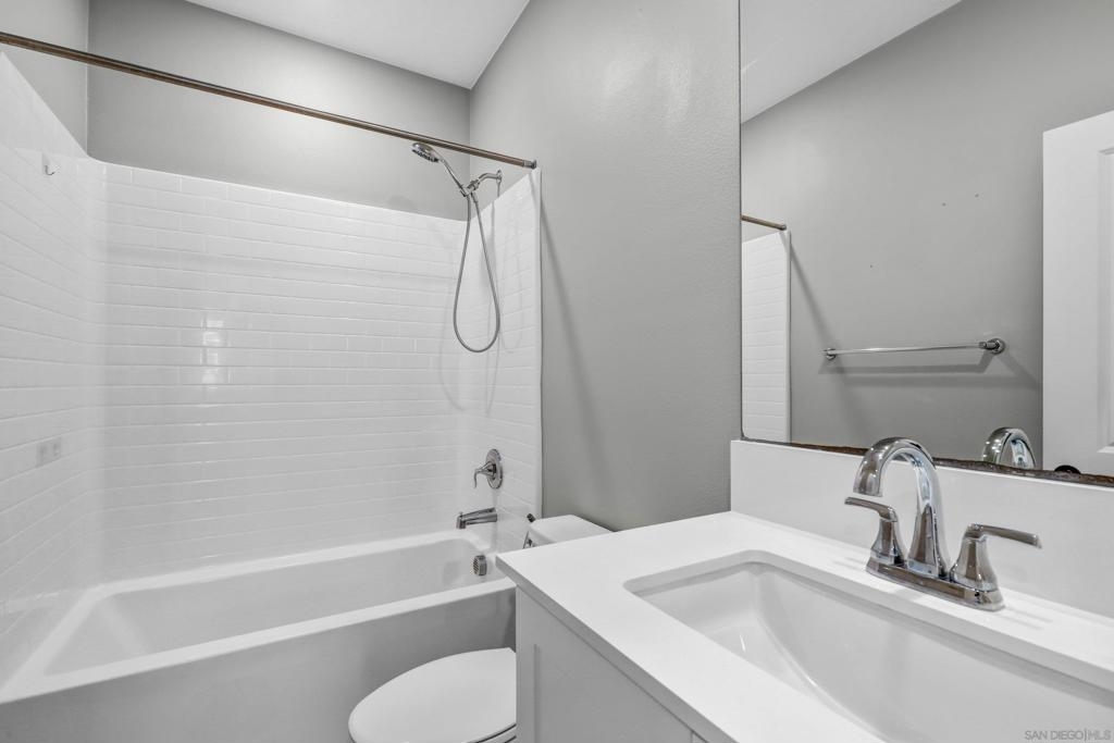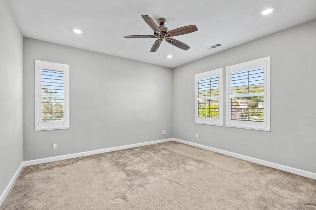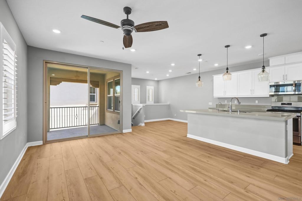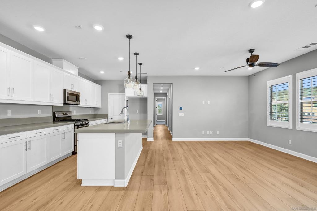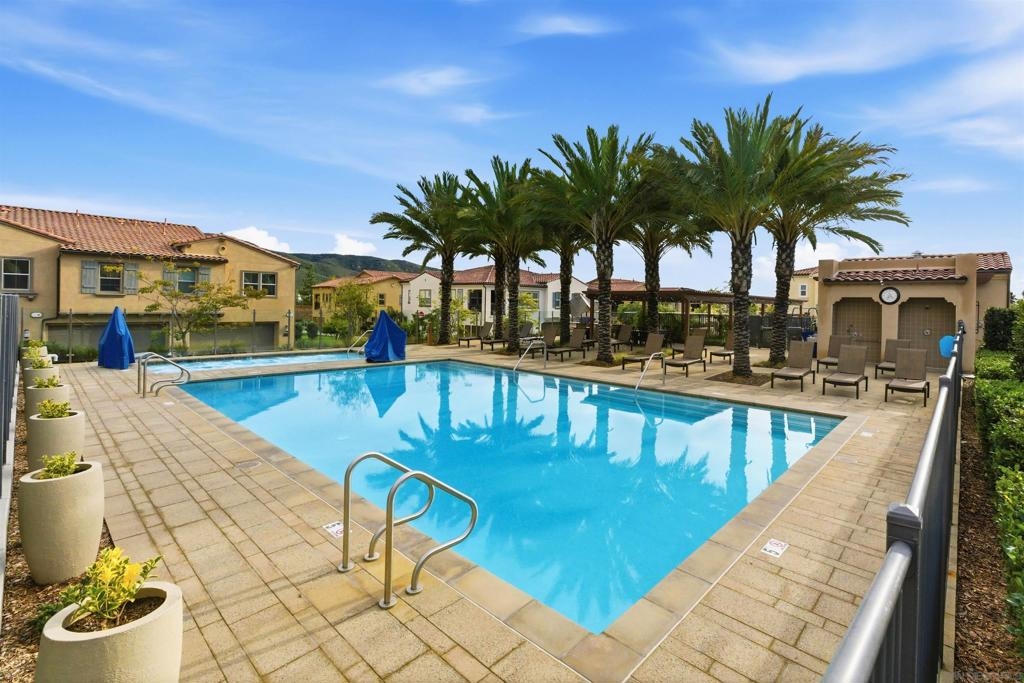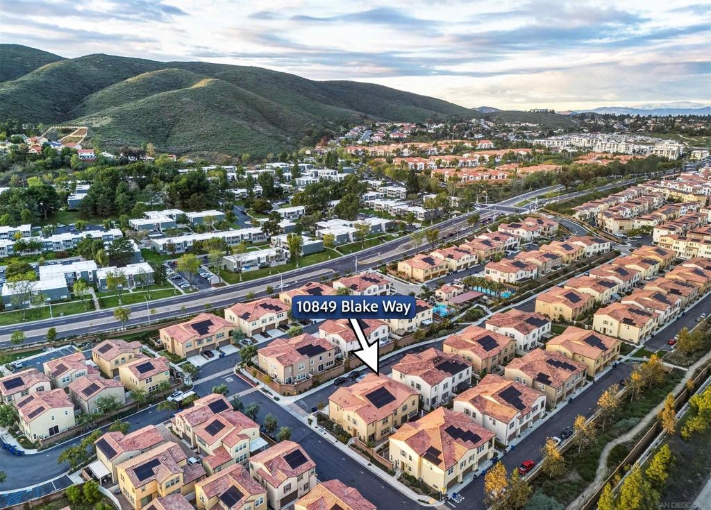 Welcome home to Pacific Village. Located in one of the newest and most-desirable townhome communities in the award-winning Poway Unified School District. No Mello-Roos fees. This home features and open-concept layout with the kitchen, family and dining room without walls is perfect for gatherings of friends and family. Chef's kitchen is highly-upgraded and has all the space needed to entertain guests, with a large island and sizeable pantry. Large balcony with plenty of space and views of Black Mountain. Primary bedrooms has a large closet and spacious bathroom, double sinks. Spacious attached 2 car garage and driveway, in addition to 2 parking decals and 2 guest permits. Tankless water heater and solar panels. Reverse osmosis, water-softner and many other smart features.