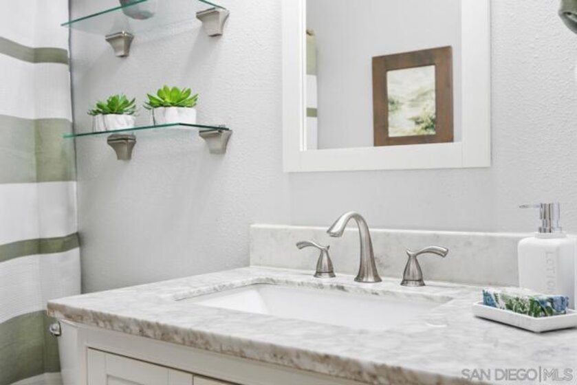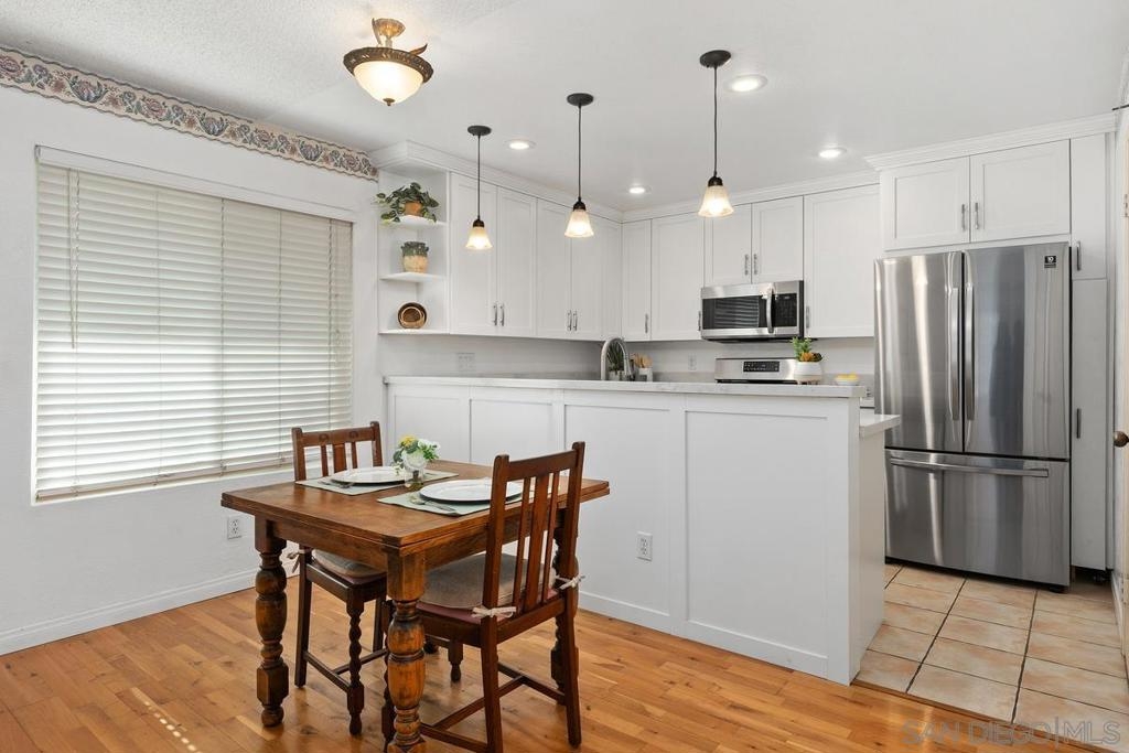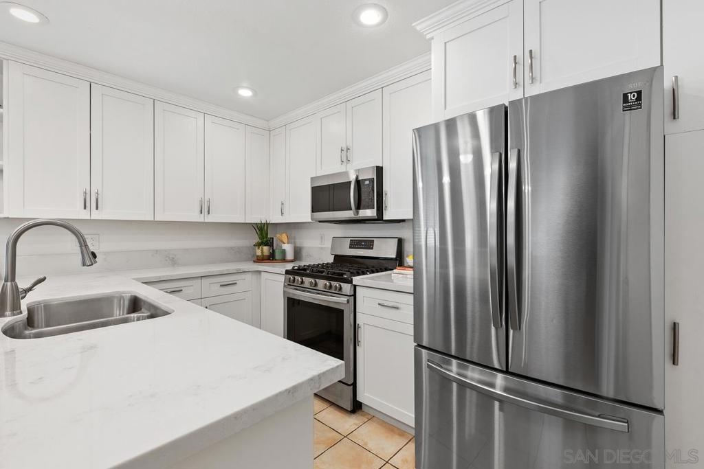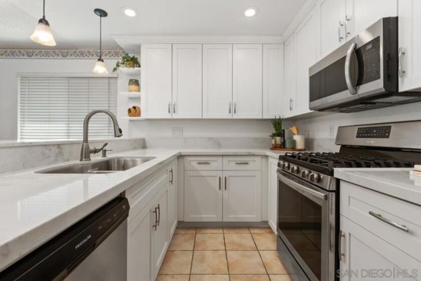 Welcome to your 2bd/1ba single level condo that lives like a detached home. Situated on a cul-de-sac in the Peñasquitos Villas community, the open concept floor plan features hardwood floors in the living room & dining room with a cozy fireplace & boasts an upgraded kitchen with quartz countertops, décor lighting & built-in stainless-steel appliances. The residence features 2 comfortably sized bedrooms with mirrored closet doors & an upgraded full bathroom. Large picture windows compliment natural light throughout with surrounding views of lush landscaping. The unit has one assigned attached shared garage space & driveway parking. The Peñasquitos Villas HOA includes water, sewer, trash, exterior building maintenance, common area landscaping, green belts & community pool. Rancho Peñasquitos is conveniently located to shopping, dining, nature trails, award winning Poway Unified School District & easy commute access to I-15 & SR-56.