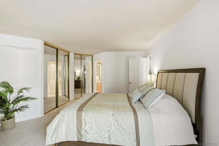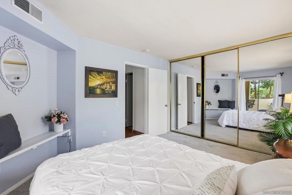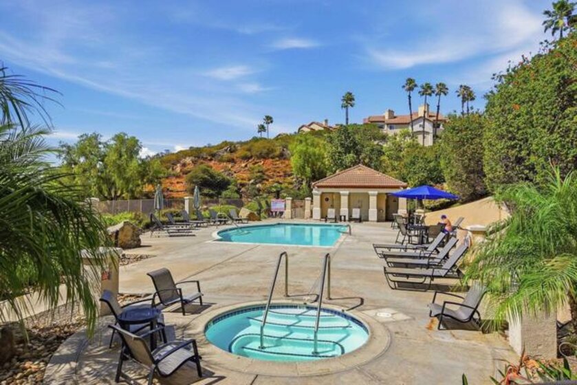 Move-in ready, this peaceful, 2-bedroom, 2-bath condo in Scripps Ranch offers comfort, style, and smart upgrades. It features an open-concept floorplan with new carpet, quartz countertops and updated fixtures and lighting. Custom California Closets in the bedrooms and laundry area provide excellent storage, plus a full-size laundry closet. French doors open to a spacious private patio with peaceful hillside and tree-lined views. Located in a quiet, elevated spot above the garages, the home enjoys maximum privacy with no neighbors behind. It includes an attached tandem 2-car garage and access to the community pool and spa. The HOA covers water and trash. Ideally situated near Sorrento Valley, Miramar, Downtown San Diego, UTC, and La Jolla.