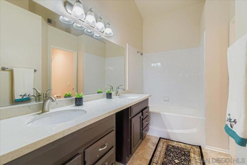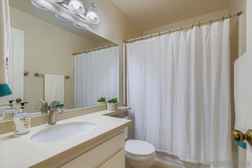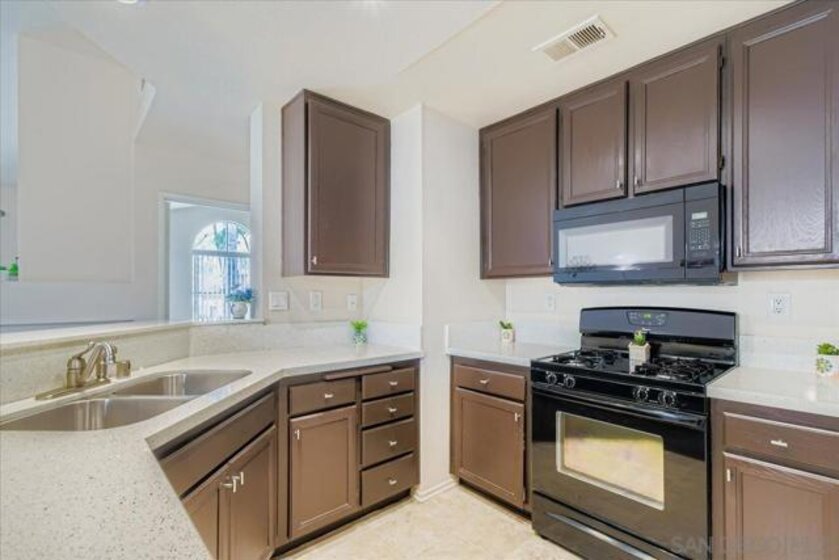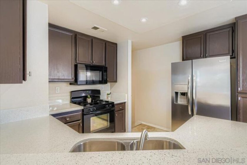 Top-Level Condo with Panoramic Views in Belsera, Tierrasanta! Welcome home to this beautifully maintained 2-bedroom, 2-bath condo in the sought-after Belsera community of Tierrasanta. This top-floor corner unit offers panoramic views, a private balcony, and a spacious living area with vaulted ceilings that create a bright, open feel. The upgraded kitchen features Quartz countertops and a newer refrigerator, while the primary suite offers an ensuite bath with Quartz countertops and a generous walk-in closet. Comfort is a priority here—enjoy the extra-large, newer HVAC system (installed in 2021) that keeps the home cool and efficient year-round. Additional highlights include a full-size washer and newer dryer, an attached one-car garage, and an assigned carport space. The Belsera community offers resort-style living with two pools, spas, volleyball courts, and scenic walking trails. Located just minutes from Mission Trails Regional Park, shopping, dining, and convenient freeway access—this home combines modern upgrades, low-maintenance living, and a peaceful natural setting. Come see why Belsera is one of Tierrasanta’s most loved communities!