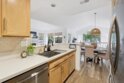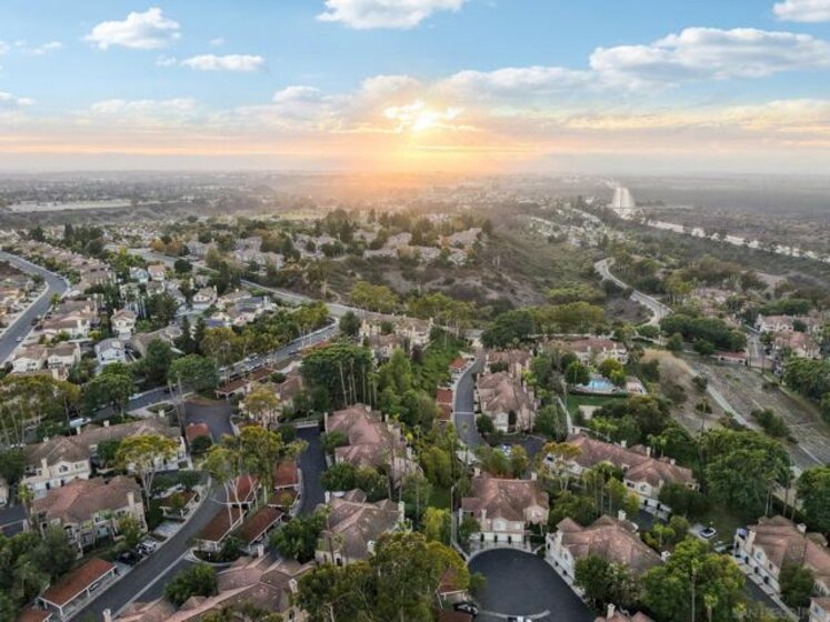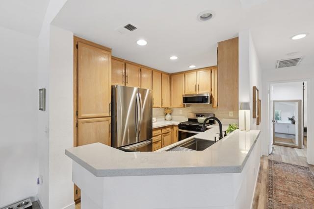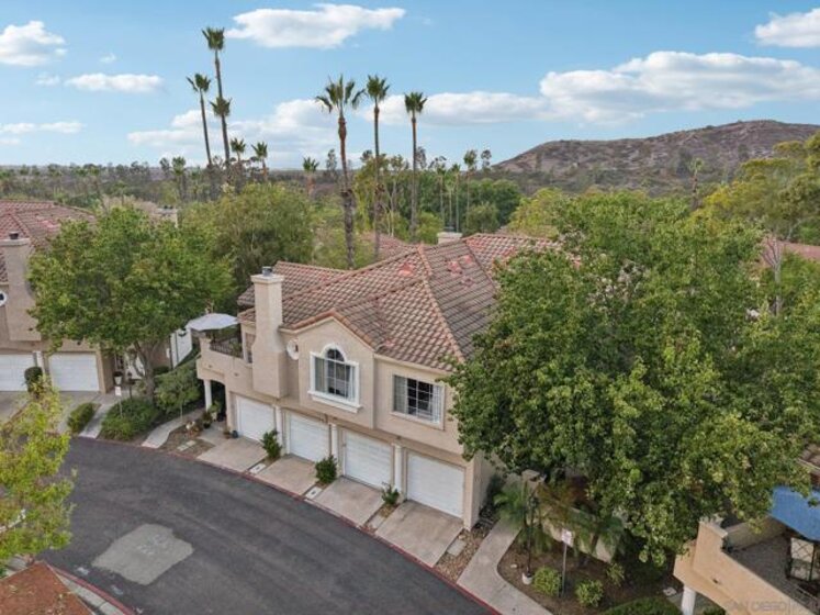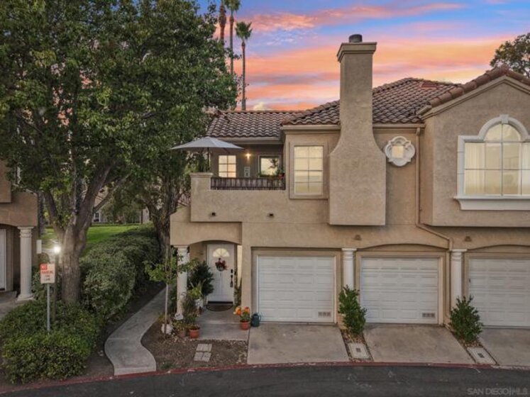 STUNNING BELSERA CONDO – PRIME LOCATION NEAR MISSION TRAILS PRESERVE – LARGE BALCONY – GARAGE WITH DIRECT ACCESS TO HOME AND CARPORT PARKING! Welcome to this beautifully upgraded and freshly remodeled upper-level 2-bedroom, 2-bath home in the highly desirable Belsera community, located just steps from Mission Trails Preserve. Bright, spacious, and designed for modern living, this home combines elegant finishes, smart features, and everyday comfort. The open-concept layout features vaulted ceilings and expansive windows that fill the home with natural light, creating a bright and airy feel. The living room features a cozy gas fireplace with Birch wood logs and a $1,600 Samsung Frame TV, along with custom bamboo window treatments. The large second-story balcony offers the perfect space to relax and take in the peaceful surroundings. The kitchen is beautiful, featuring wood-finish cabinets, quartz countertops, a deep stainless steel chef’s sink with a bronze faucet, a low-profile vented microwave, custom lighting, and an LG refrigerator with a double pull-out freezer. The pull-out pantry shelves and abundant cabinetry make storage effortless. The spacious primary suite features vaulted ceilings and a sliding barn door that opens to a luxurious ensuite bathroom with a double vanity, a beautiful walk-in custom-tiled shower, and a large walk-in closet. Both bathrooms have been stylishly updated with modern fixtures and finishes. Additional features include a Blink camera doorbell with a smart DESLOC front lock that opens via fingerprint, code, fob, or Bluetooth. The attached garage with direct access to your home is fully finished with epoxy floors, mounted LG TV, overhead storage, and a stackable LG washer and dryer. The house also includes bronze hardware throughout, adding to the elevated designer feel. Recent upgrades include a new HVAC system, a new water heater, and new kitchen appliances. The elegant, warm oak LVP flooring ties everything together, creating a cohesive, sophisticated look. Belsera offers resort-style amenities, including two pools, spas, BBQ areas, volleyball courts, walking trails, and lush, park-like landscaping. Enjoy a lifestyle that blends tranquility and convenience—just minutes from freeways, schools, shopping, restaurants, and parks. This stunning home is San Diego living at its finest—modern, functional, and completely move-in ready. Conveys: 2 mounted TVs (Samsung Frame TV in the living room and LG TV in the garage. LG stackable washer and dryer, all kitchen appliances, all window covers, Camera doorbell, and smart door lock.