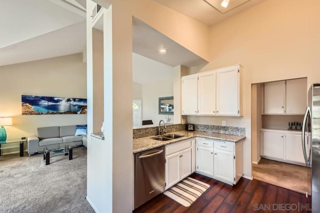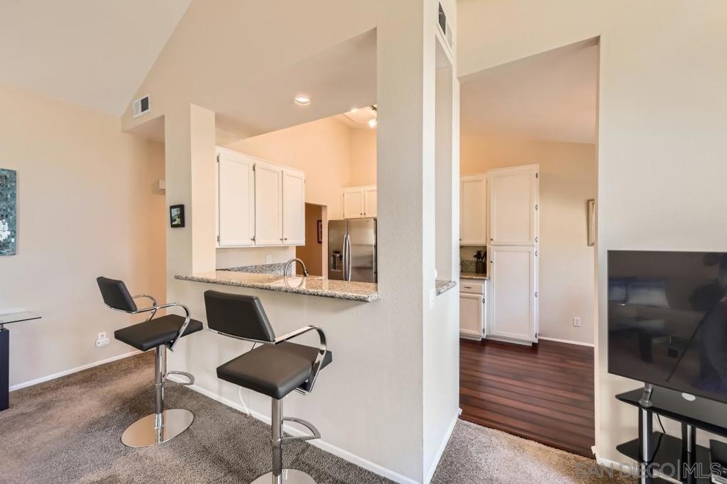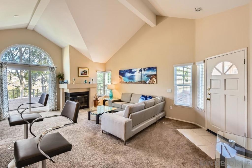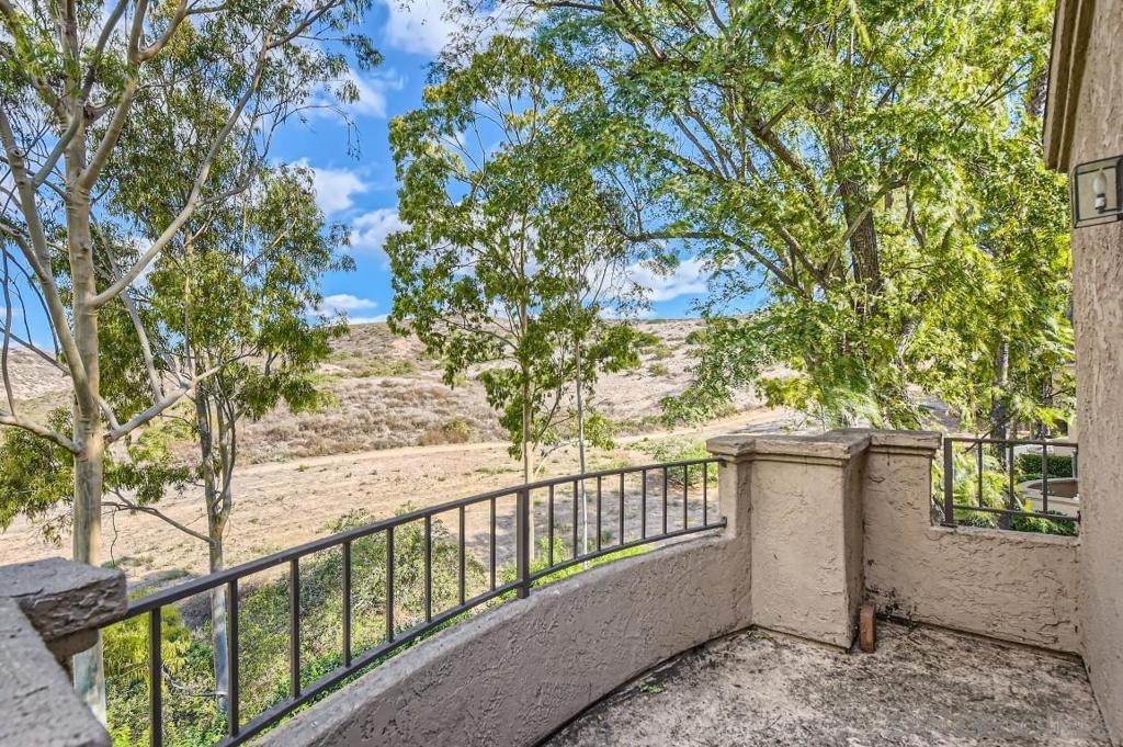 Location and view. Well maintained upper end unit w/complete privacy & panoramic views of Mission Trails park. Beautifully remodeled with custom paint, newer carpeting, all new dual pane windows/slider, new window coverings & added a new pantry. Remodeled Kitchen w/granite counter tops & new appliances. Remodeled baths w/granite counter, mirrored wardrobe doors, custom shutters, new ceiling fan, new garage door & newer W/D. Upstairs unit. No Unit Above. There is a unit below. Two story building.