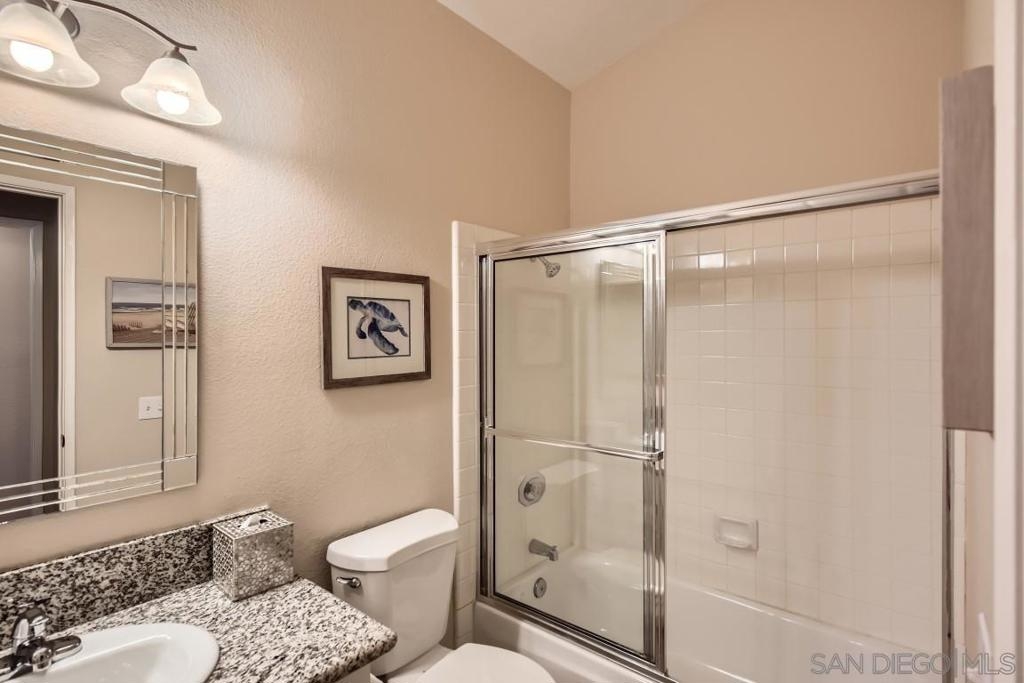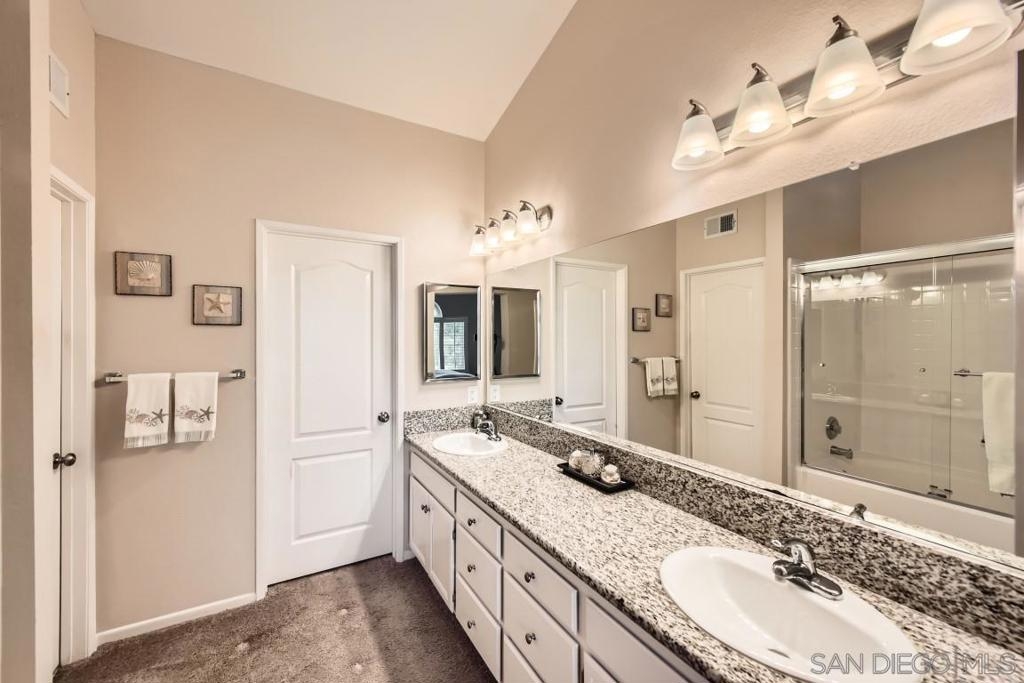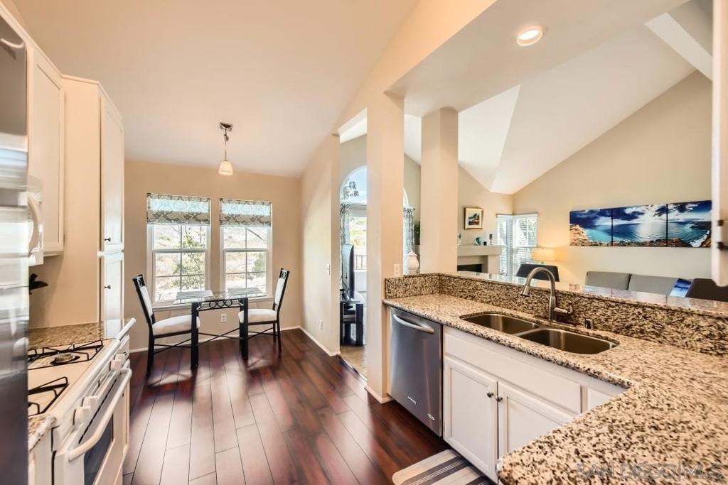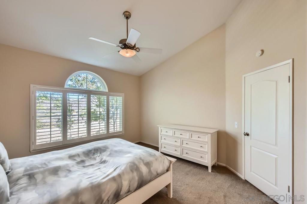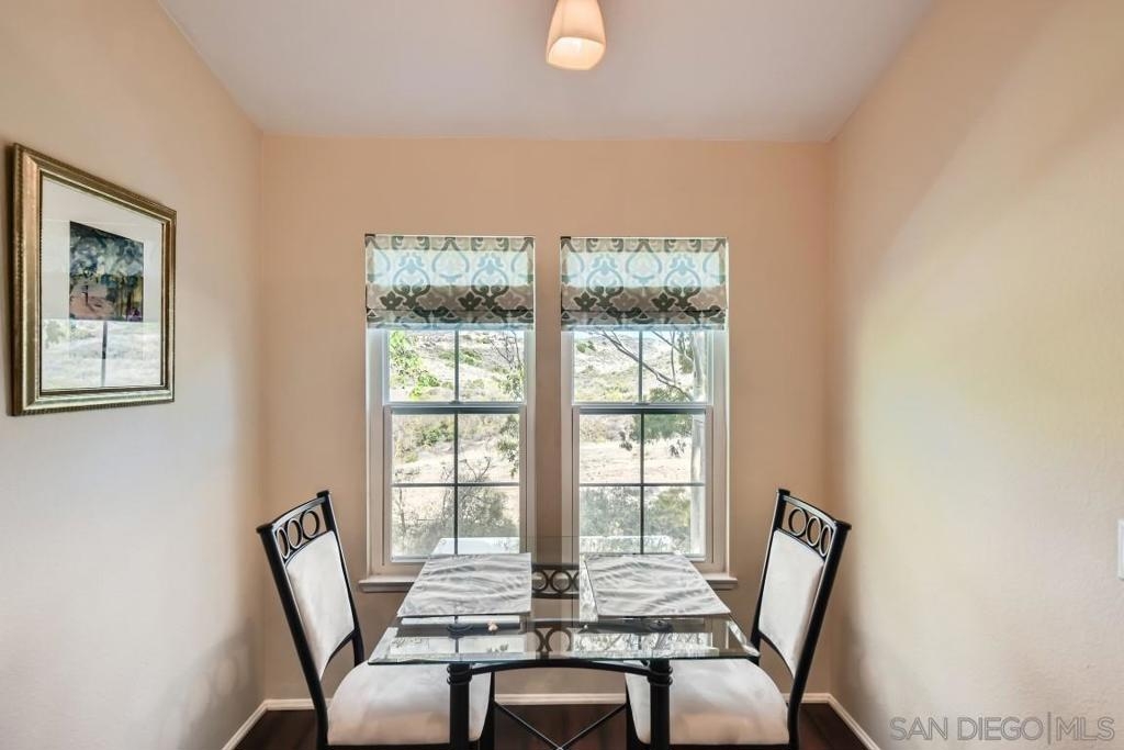 Location and view. Well maintained upper end unit w/complete privacy & panoramic views of Mission Trails park. Beautifully remodeled with custom paint, newer carpeting, all new dual pane windows/slider, new window coverings & added a new pantry. Remodeled Kitchen w/granite counter tops & new appliances. Remodeled baths w/granite counter, mirrored wardrobe doors, custom shutters, new ceiling fan, new garage door & newer W/D. Upstairs unit. No Unit Above. There is a unit below. Two story building.