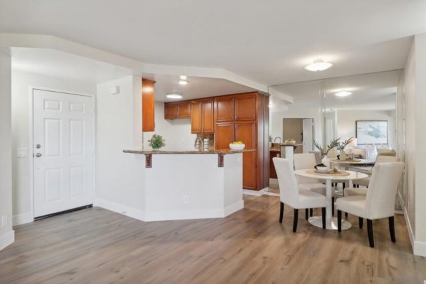 Welcome to this stunning, step-free VIEW home, ready for its new owner! Revel in breathtaking views from every room and unwind on the spacious covered balcony. This beautifully remodeled home features new flooring, tile, carpet, fixtures, and newer air conditioning unit. Boasting one of the best locations in the complex, the garage is conveniently situated just steps from the front door. Enjoy exceptional amenities and easy access to the freeway, shopping, and entertainment.