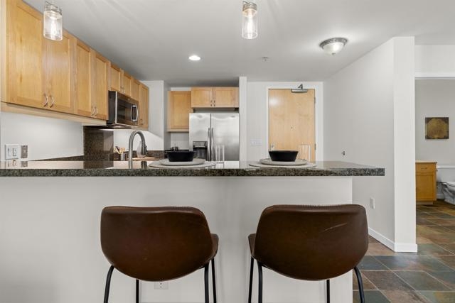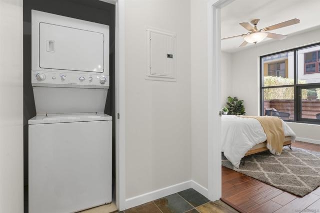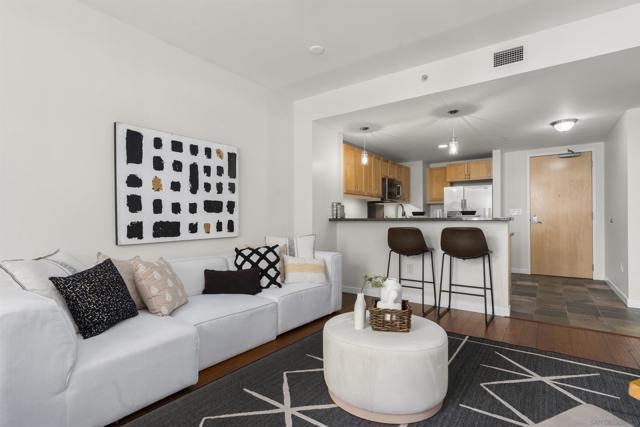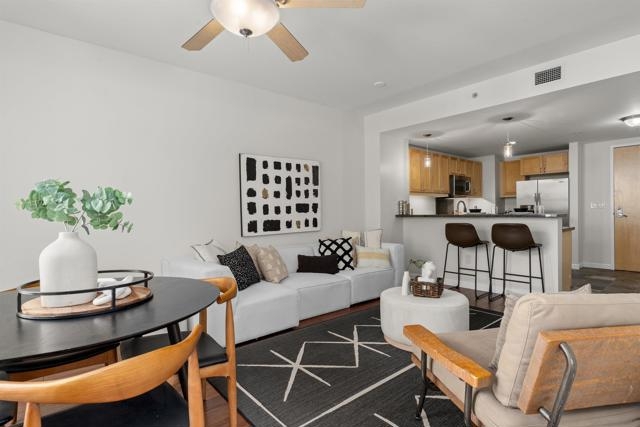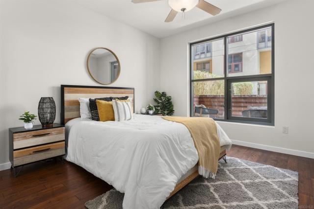 Charming Metrome Residence with Zen Courtyard Views! This beautifully maintained one-bedroom home features engineered hardwood floors, fresh paint, and ceiling fans in both the living area and bedroom. The kitchen offers granite countertops, stainless steel appliances, and easy-care stone flooring. Enjoy a spacious private patio overlooking the tranquil courtyard. Ideally located in the Ballpark District—just steps from Petco Park, the Central Library, San Diego Bay, and the Gaslamp Quarter. Metrome amenities include a fitness center, resident lounge, onsite security, and a peaceful courtyard with seating. Metrome in Ballpark District offers a prime Downtown San Diego location—steps from Petco Park, San Diego Bay, Gaslamp District, the Central Library, shops, and restaurants. Residents enjoy a Zen courtyard, fitness center, landscaped outdoor area with water feature, bike storage, secure entry, and a common lounge with kitchen. Experience the perfect blend of style, convenience, and community at Metrome!