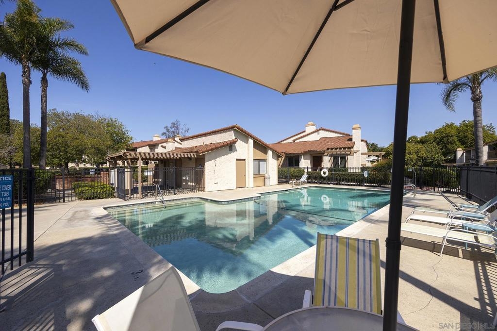 This condo is in the lovely Bernardo Terrace community which is minutes away from shopping, restaurants, and a golf course. The ground floor features a dining area, kitchen, and a living room with a stone brick fireplace. There is new carpet flooring throughout the unit, and tile flooring in the kitchen. There is a patio off of the dining area and off the top floor. The kitchen has a double sink, refrigerator, built-in microwave, stove/oven, dishwasher. Off the kitchen, and a two-car garage.All three bedrooms are on the second level of the unit with a shared bathroom in the hallway. The master bedroom has French doors that open up to a private balcony space, a walk-in closet, and has its own bathroom with a vanity with double sink and the shower and toilet in a separate room. The other two bedrooms have mirrored closets. Owner will not be making any repairs to the property sold as is, hence the price.