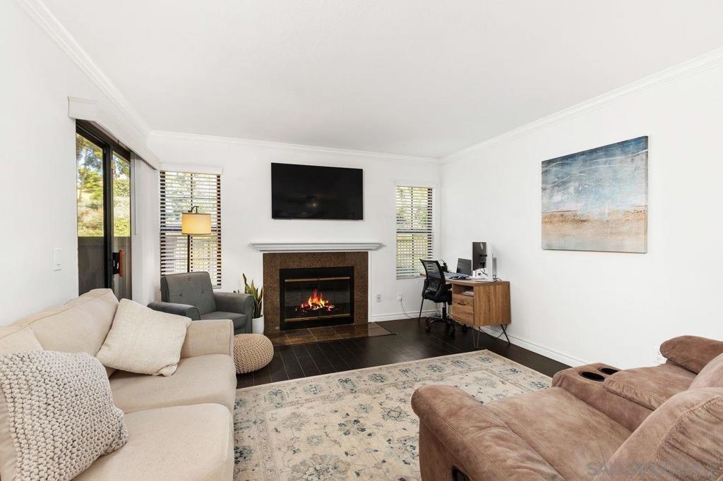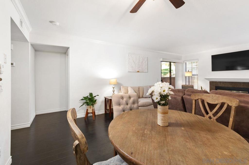 Nestled in the prestigious Il Palio community of Rancho Bernardo, this beautiful first level corner unit offers the perfect blend of comfort and convenience. Enjoy an open-concept layout with a cozy fireplace, and a private balcony with stunning views. The kitchen boasts granite countertops and stainless steel appliances. The primary bedroom features a walk-in closet, and an en-suite bathroom, and sliding doors to the balcony. Additional highlights include a versatile second bedroom, in-unit laundry, and two assigned parking spaces. Residents enjoy resort-style amenities including a pool, spa, fitness center, tennis, and basketball court. Conveniently located near shopping, dining, parks, golf courses, and top-rated schools. Experience Southern California living at its finest!