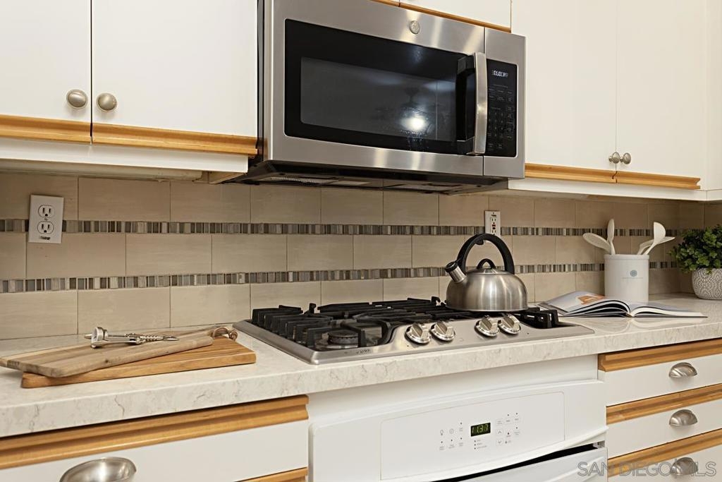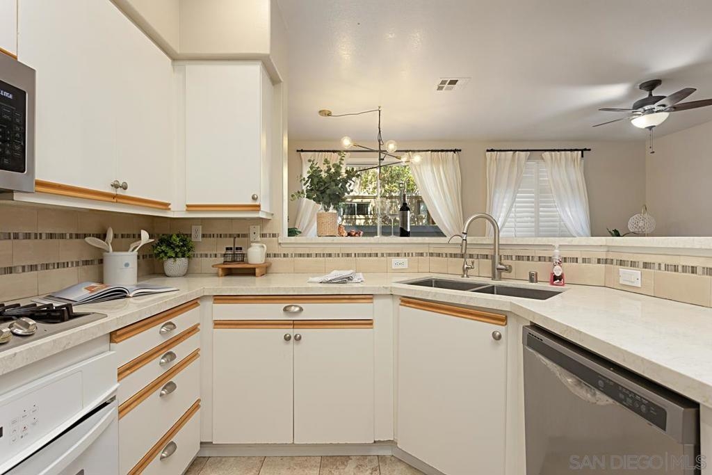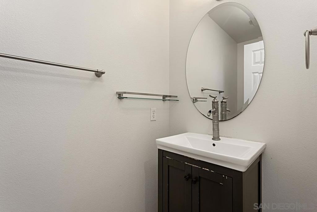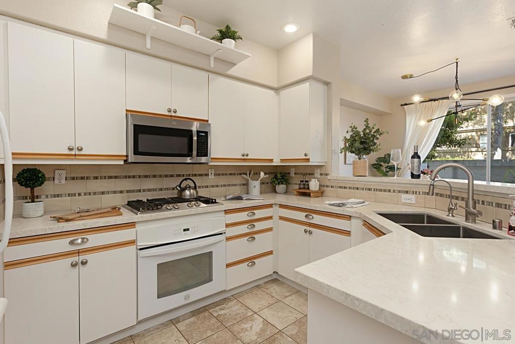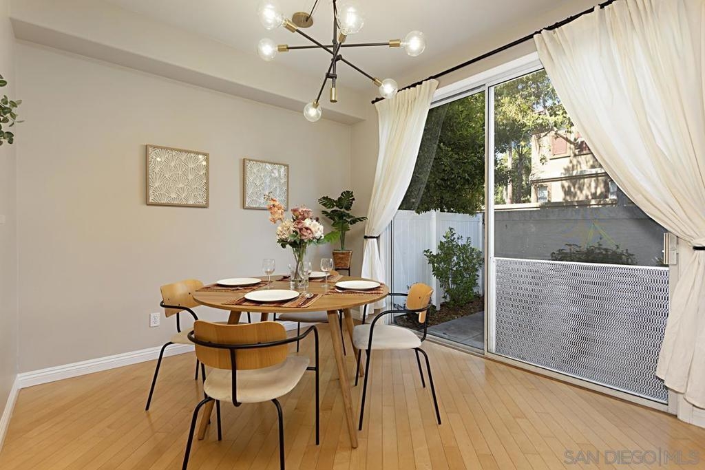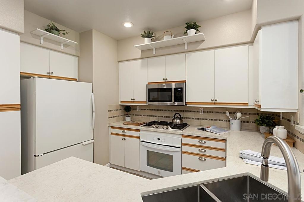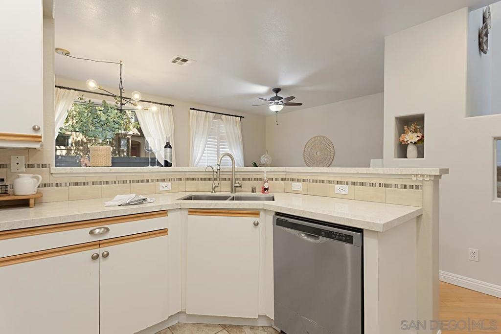Welcome to this move-in ready gem in Sabre Springs! This east-facing condo/townhome boasts an abundance of natural light and features an open layout connecting the kitchen, dining, and living areas. The optional full bedroom downstairs is a big plus. Recent updates include brand-new carpet upstairs, fresh paint downstairs, a new dishwasher, water heater, and newer Quartz kitchen countertops. Downstairs boasts hardwood flooring. Upstairs, two comfortable bedrooms each have their own full bathroom. The upgraded master bath includes a double vanity and standing shower. Parking is ample with a one-car garage, a driveway, and one assigned uncovered spot. HOA COVERS WATER, TRASH, POOL, GYM, AND EXTERIORS OF THE HOUSE! Outside, a private patio sets the stage for outdoor gatherings and entertaining. The location offers a safe environment, creating the perfect space for kids to play freely. Being just a stone's throw away from the I-15 freeway, restaurants, and shops ensures that everything you need is within easy reach. Don't miss out on this wonderful opportunity to call this place your new home!