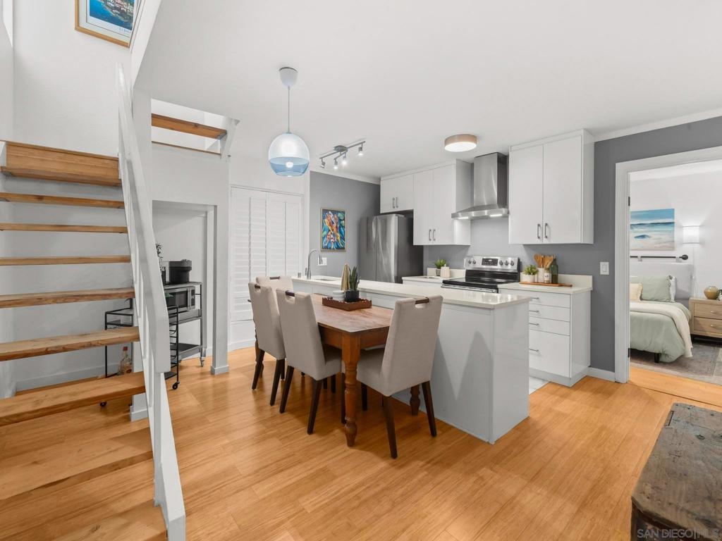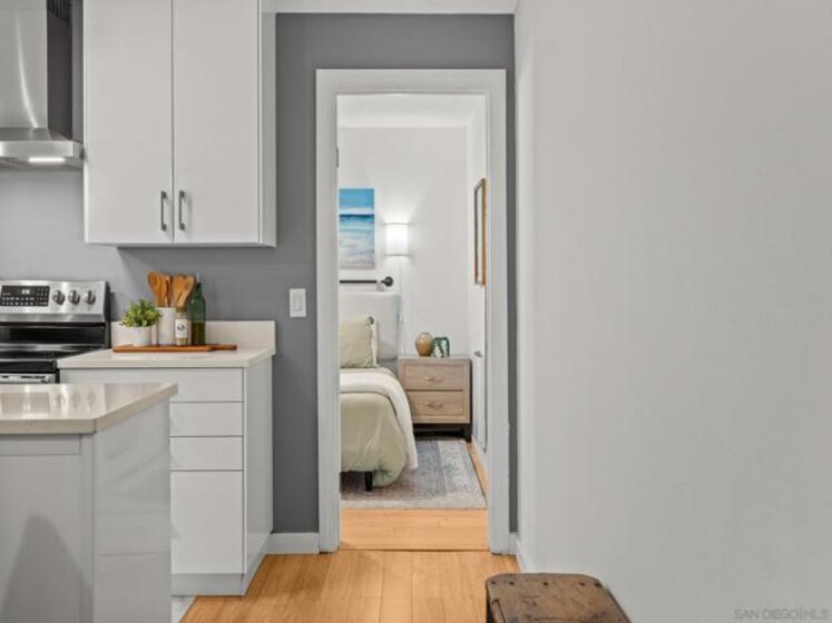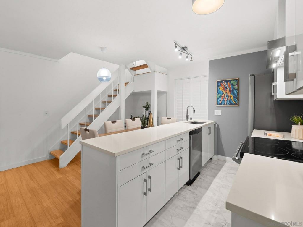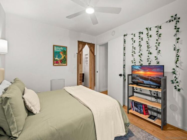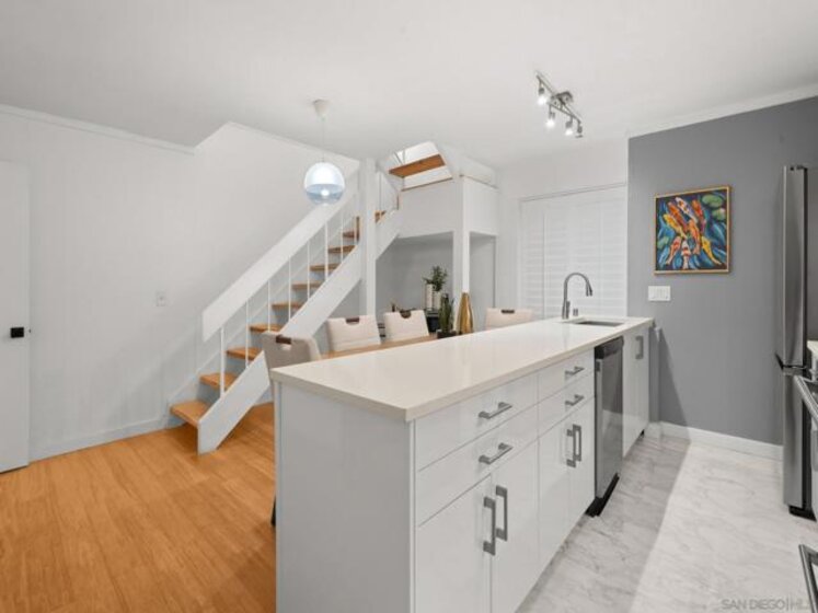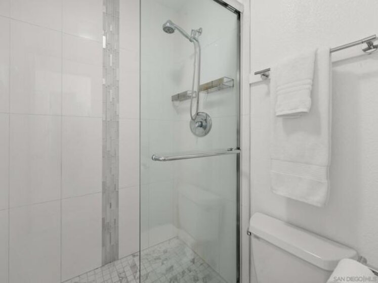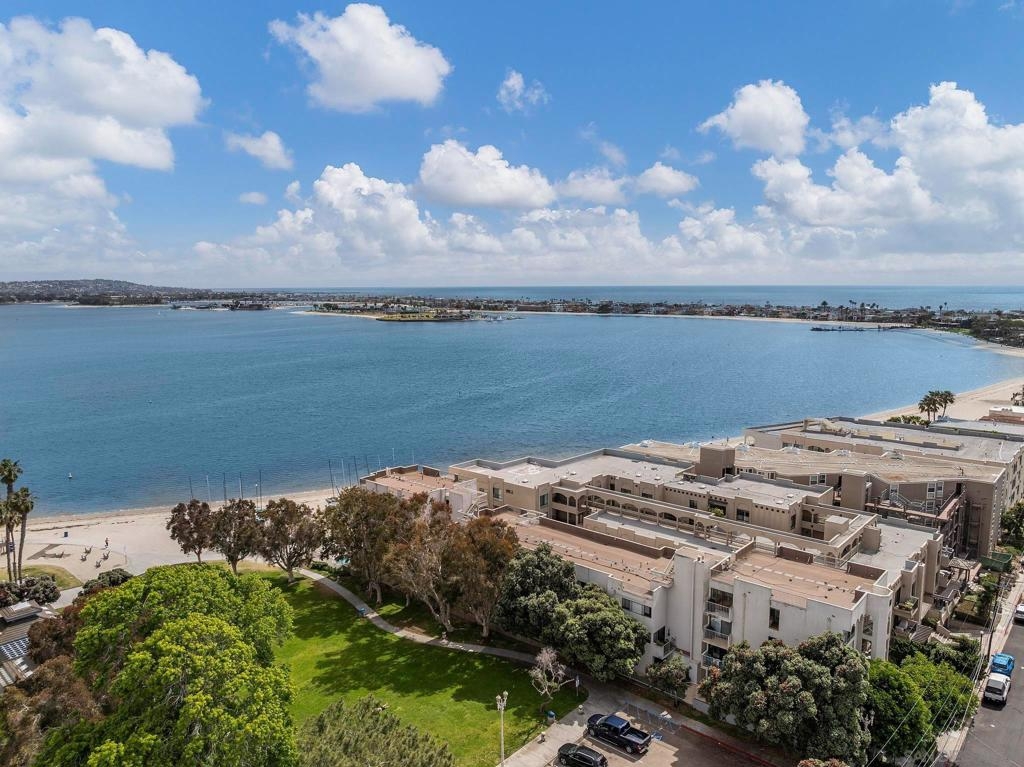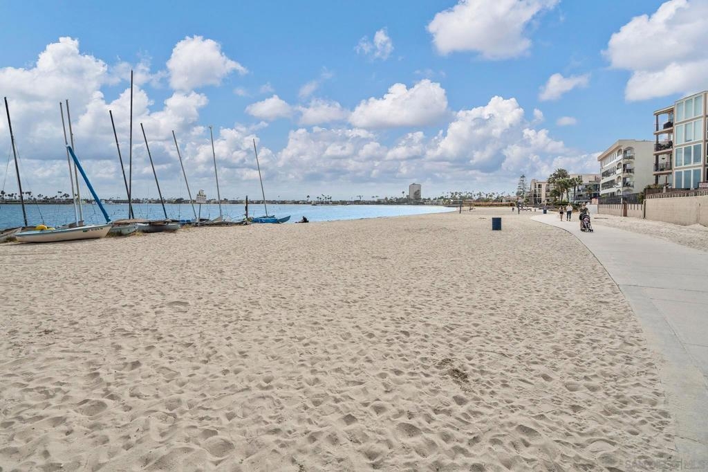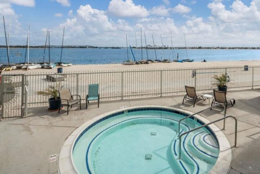 Experience the very best of San Diego coastal living in this rarely available, renovated two-level condominium ideally located directly on prestigious Sail Bay. Just steps from the sand, scenic boardwalks, bike and pedestrian paths, and calm bay waters perfect for kayaking, paddle-boarding, and swimming, this home offers an unmatched waterfront lifestyle in the heart of Pacific Beach. The entry level welcomes you with a spacious, light-filled living room featuring bamboo hardwood flooring, white plantation shutters, built-in shelving, and a discreet wet bar—ideal for entertaining after a day on the water. The thoughtful split-level layout leads down to the lower level, where a newly updated kitchen and open dining area create the perfect gathering space for friends and family. Two spacious primary suites are designed as a tranquil retreat; one offers direct access through sliding glass doors to your exclusive-use patio, where you can enjoy peek-a-boo bay views and the lush green park. From the patio, step directly onto the sand or unwind in the waterfront spa overlooking Sail Bay. The HOA does not currently restrict short-term rentals (city licensing requirements apply), offering flexibility for a primary residence, second home, or vacation rental opportunity. Just minutes from restaurants, shops, yacht and sailing clubs, and endless outdoor recreation, this exceptional bayfront home offers access to everything San Diego has to offer. Swim, sunbathe, stroll the iconic Sail Bay boardwalk, and enjoy breathtaking sunsets over the water—this is coastal living at its finest! Recent upgrades include a remodeled kitchen, bronze door hardware, new combination light and fan fixtures in the bedrooms, and a newer electrical panel. The bright, modern kitchen showcases stainless steel appliances, a newer refrigerator, quartz countertops, contemporary cabinetry, and luxury vinyl plank flooring. The bedrooms feature bamboo hardwood floors, ample closet space, and beautifully updated bathrooms. Additional community features include a furnished lobby entrance, gated underground parking, entry call box, garage laundry facilities with multiple machines, surfboard and paddle-board storage, bike storage, and oversized private storage lockers conveniently located behind your designated parking space. Don’t miss your chance to own this incredible Bayfront home in San Diego!