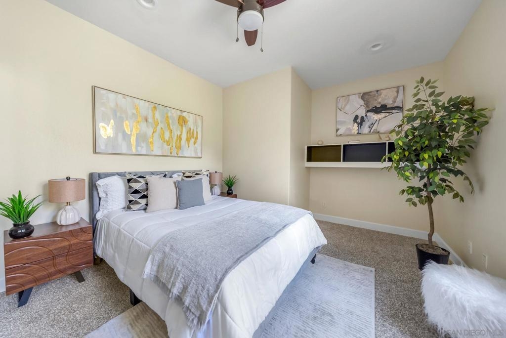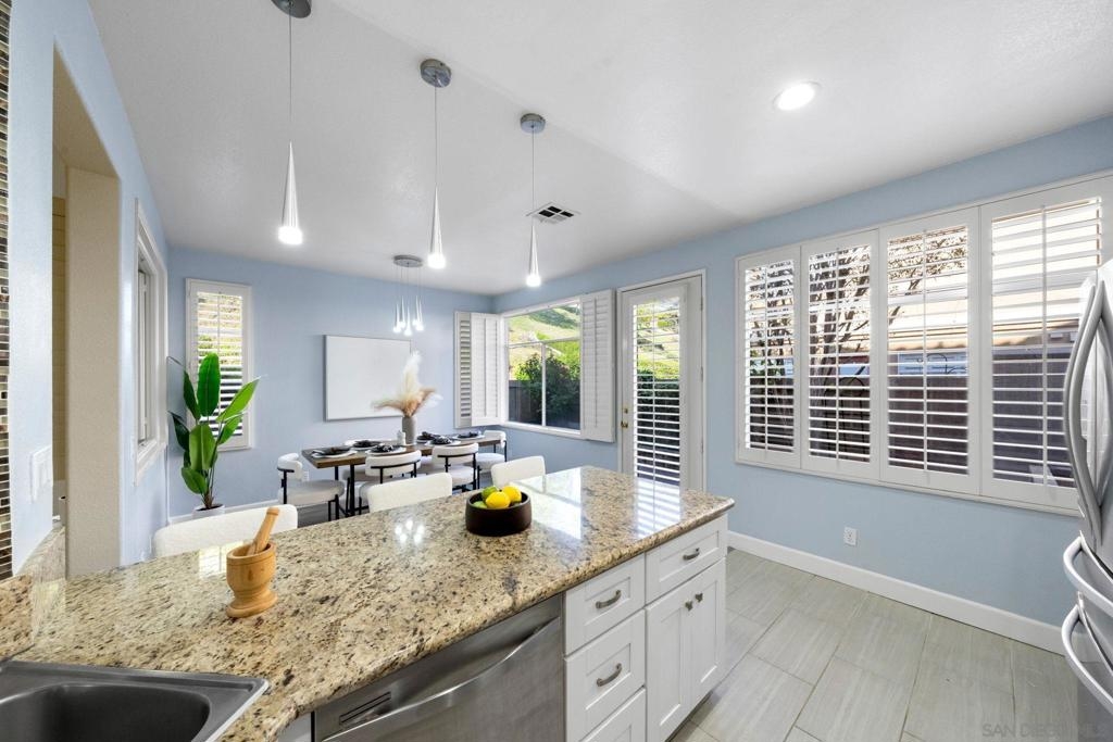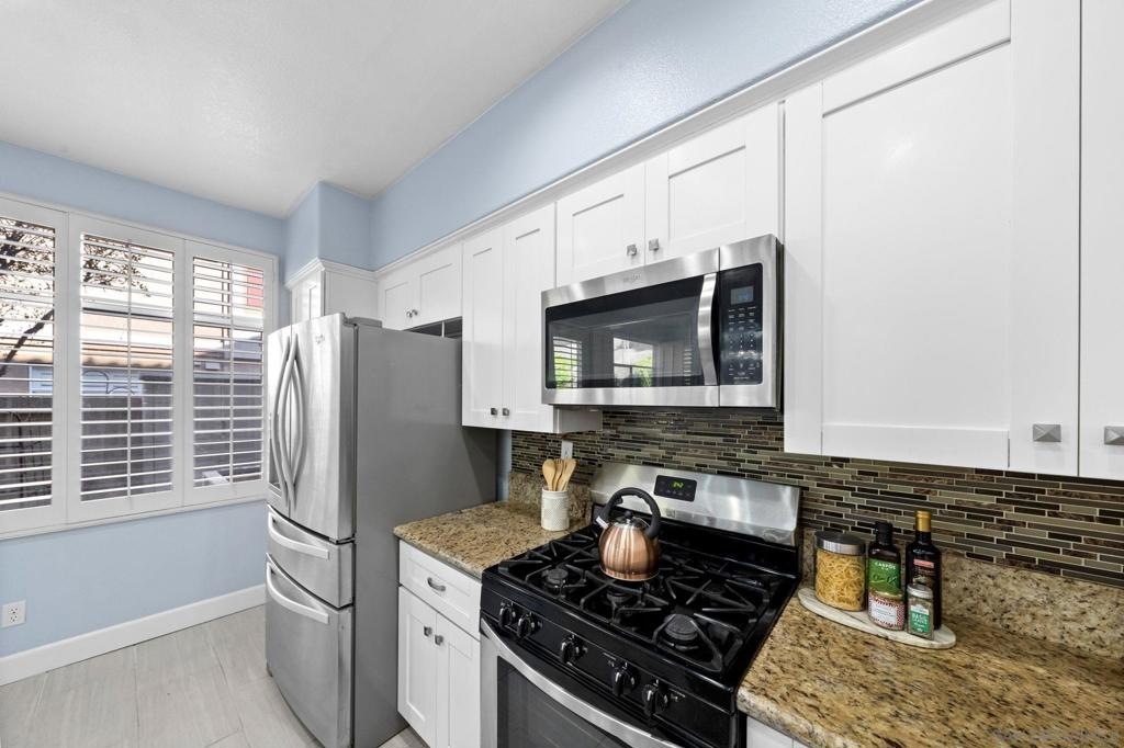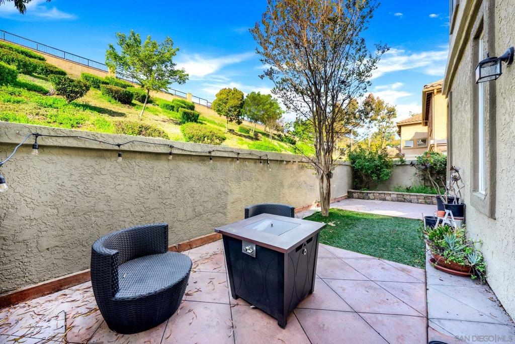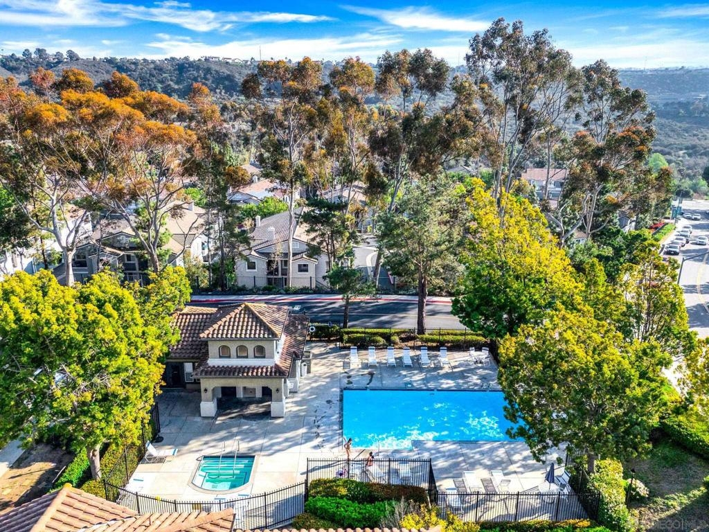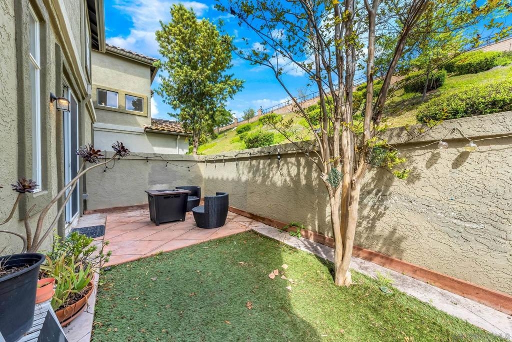 Amazing move-in ready 3 bedroom/2.5 bath spacious Townhome located in the serene 'Sabre Terrace' complex of Sabre Springs. One of the biggest floor plan in the community with L-shaped very private, lush enclosed patio area with flowering garden. One of the rare find in the community. Upgraded flooring, large kitchen with stainless steel appliances. Wood plantation shutters throughout lower floor. Epoxy in Garage.Lots of storage space throughout the home including niche in upstairs bedroom. Community boasts lovely pool, spa and fitness center. Awesome location close to freeways, schools, park and shopping. HOA covers water and trash