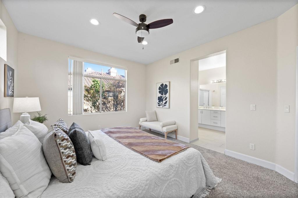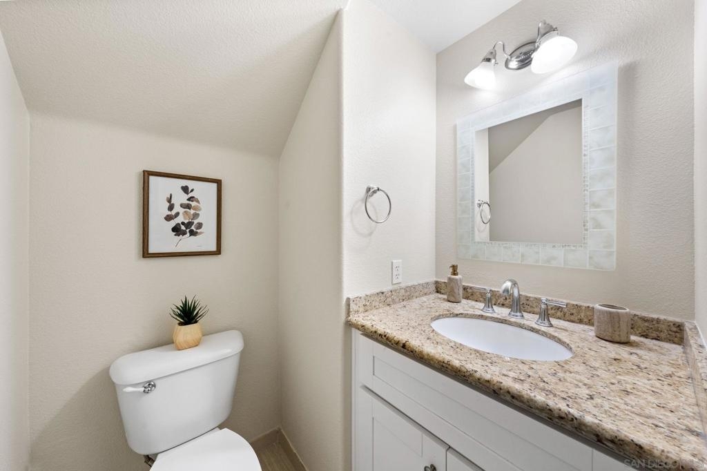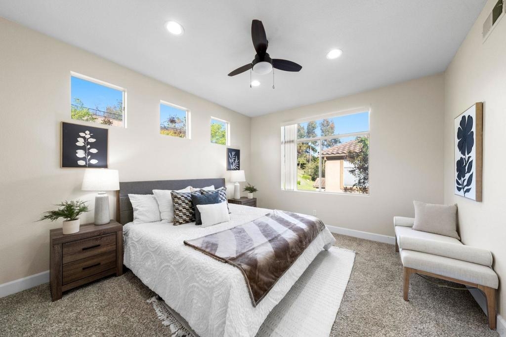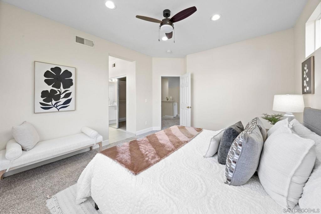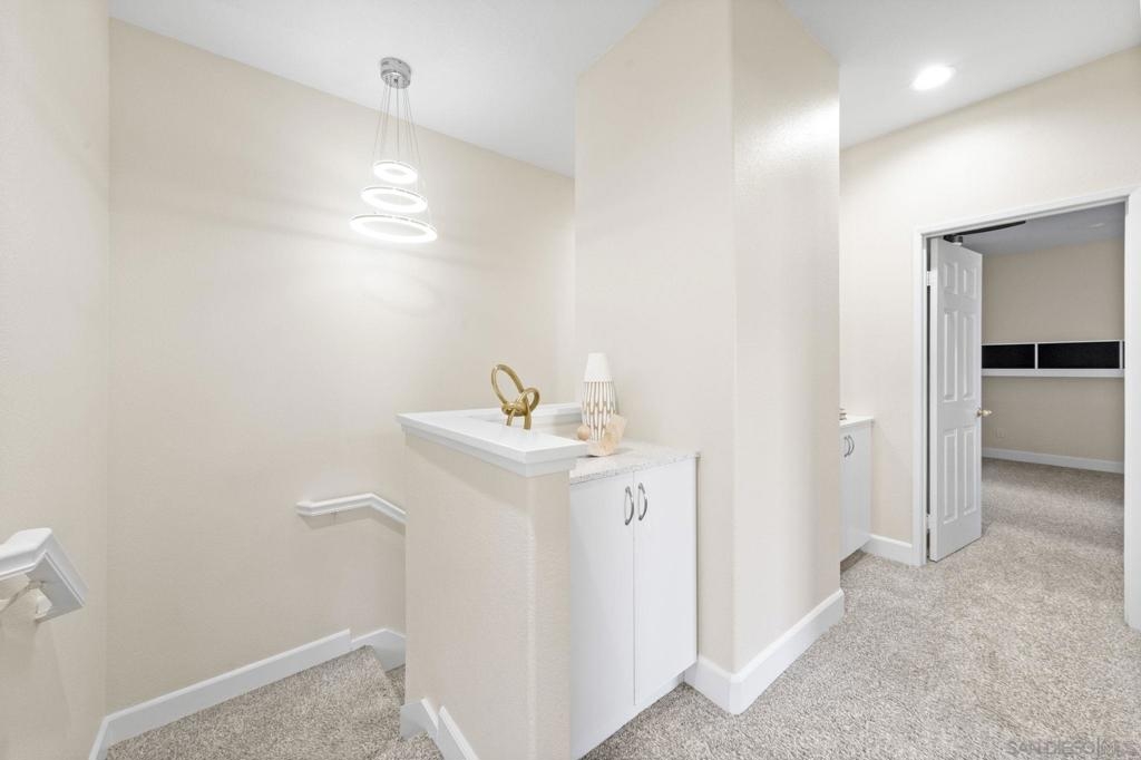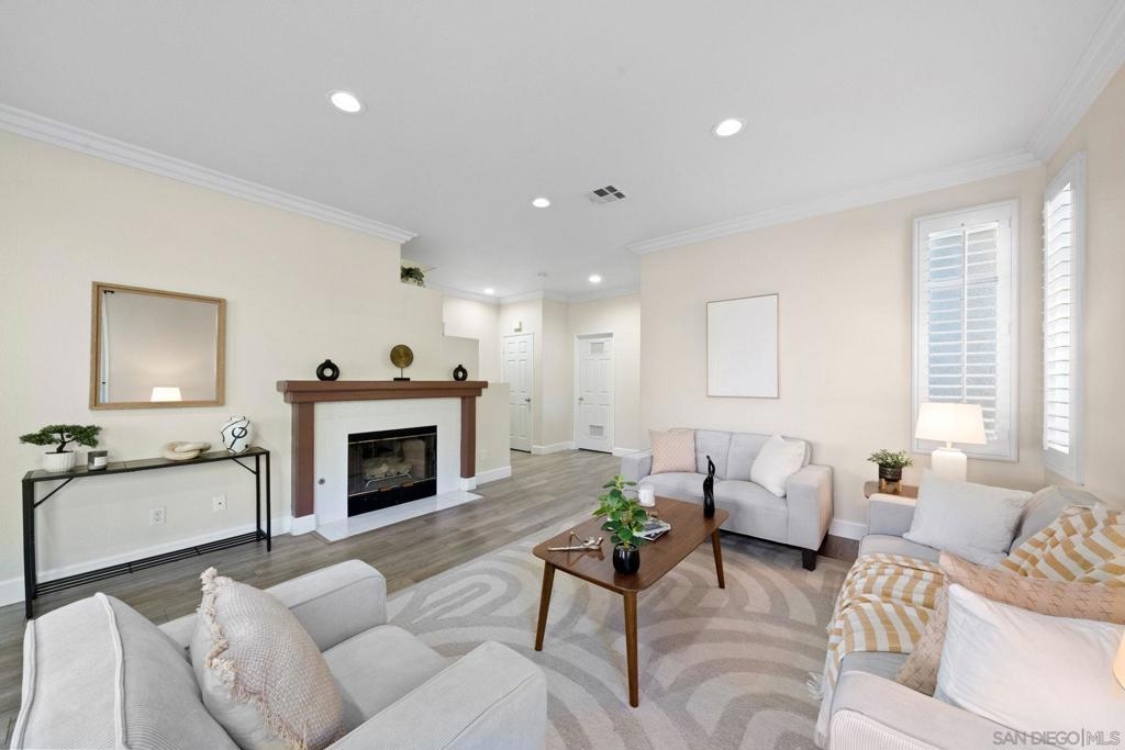 Amazing move-in ready 3 bedroom/2.5 bath spacious Townhome located in the serene 'Sabre Terrace' complex of Sabre Springs. One of the biggest floor plan in the community with L-shaped very private, lush enclosed patio area with flowering garden. One of the rare find in the community. Upgraded flooring, large kitchen with stainless steel appliances. Wood plantation shutters throughout lower floor. Epoxy in Garage.Lots of storage space throughout the home including niche in upstairs bedroom. Community boasts lovely pool, spa and fitness center. Awesome location close to freeways, schools, park and shopping. HOA covers water and trash