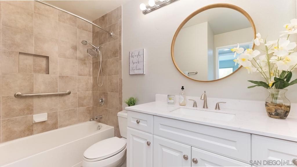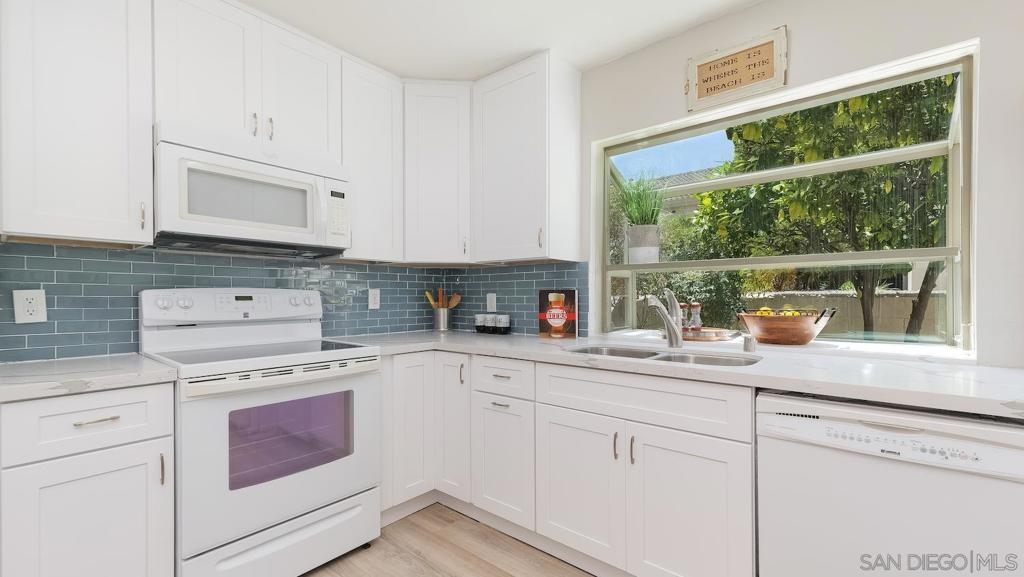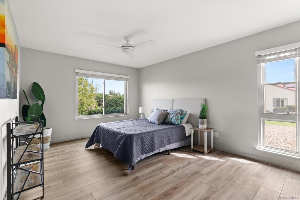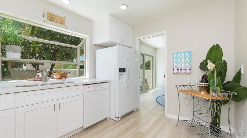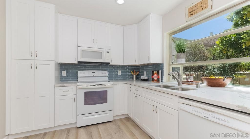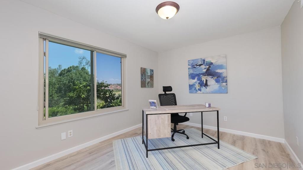 A rare beautifully remodeled 55+ Oaks North property! This home offers the perfect blend of comfort and luxury. With peek views of the golf course, luxury plank flooring throughout and a fully updated kitchen with soft-close cabinets, sleek countertops, recessed lighting, and more. The spacious floor plan includes an optional third bedroom or office, plus two private patios to enjoy the views. Enjoy a full-sized in-unit laundry, a convenient storage unit next to your covered parking space, and the prime location walking distance to the renowned Rancho Bernardo Inn and the Bernardo Winery, both less than a mile away. Oaks North offers a pool, hot tub, pickleball, and tennis courts, ensuring a vibrant and active lifestyle. This property is truly a gem!