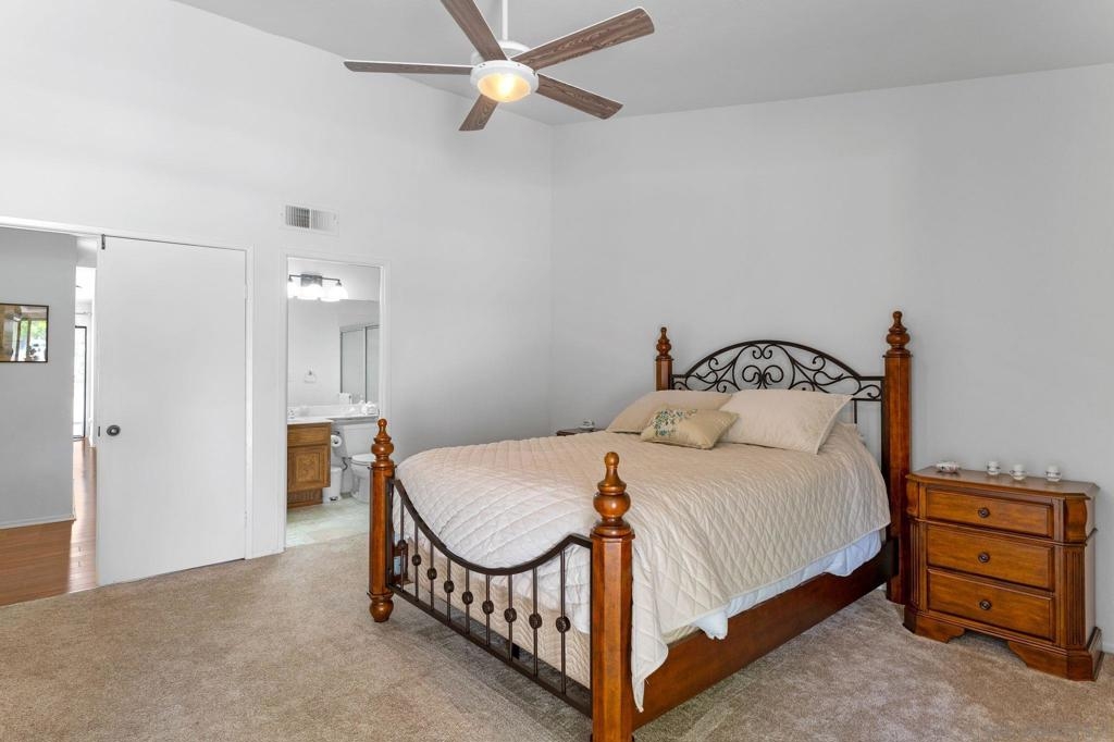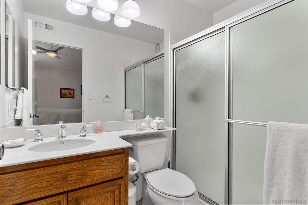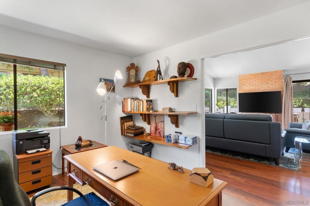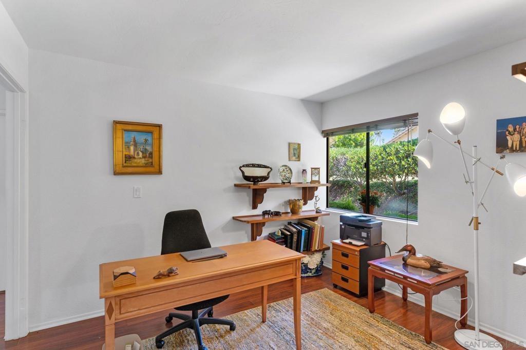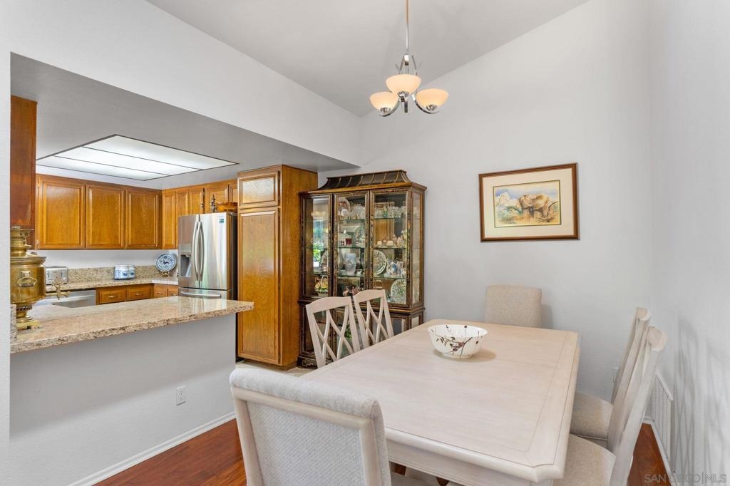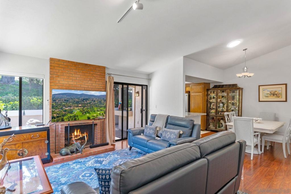 Price Reduced! Welcome to Oaks North, the epitome of a 55+ Active Adult Community! Discover the charm of this single-level 3-bedroom, 2-bath end-unit home with 1 car garage, meticulously cared for and ready for you to move in. As you step inside, you'll be greeted by a bright and open living room with vaulted ceilings, laminate flooring, cozy carpeting, and a welcoming fireplace, creating the perfect ambiance for relaxation. The functional kitchen boasts wood cabinets and granite countertops, providing ample space for all your culinary adventures. The spacious main bedroom features vaulted ceilings, a large walk-in closet, and a door leading to a private front patio, offering a serene retreat. The bathroom is enhanced with vanity, mirror, and light fixture, adding a touch of elegance to your daily routine. The open third bedroom presents a versatile option for your home office, ensuring you have the perfect space for productivity. Step outside to the back patio and immerse yourself in a park-like setting with mature trees providing shade and picturesque views of the community grassy area. Oaks North is not just a home; it's a lifestyle. The community boasts a clubhouse, exercise room, pool and spa, tennis, pickleball, and lawn bowling courts. With various classes offered to cater to all interests, you'll never run out of things to do. Conveniently located approximately one mile east of the Rancho Bernardo Winery and one mile south of the Oaks North Golf Course, you'll have easy access to local attractions. This home is a rare find and won't last long.