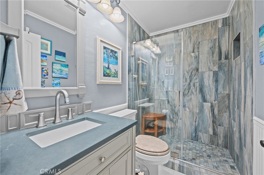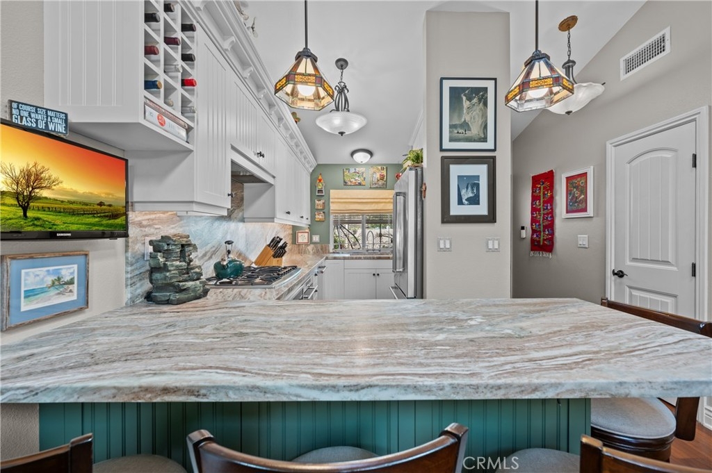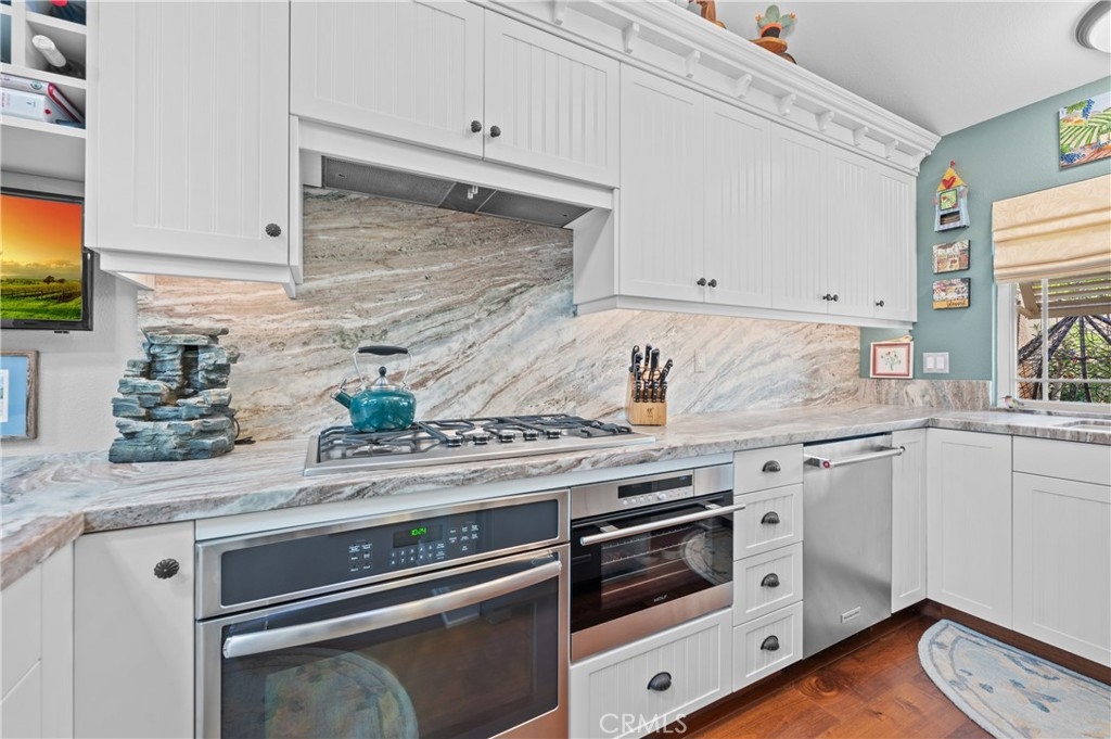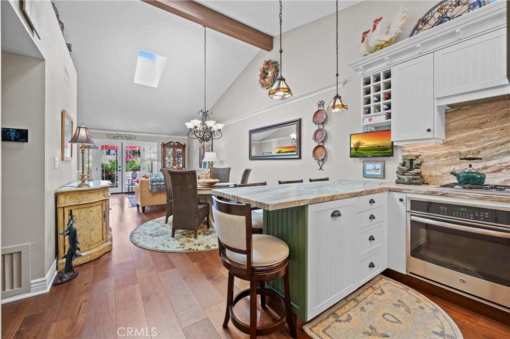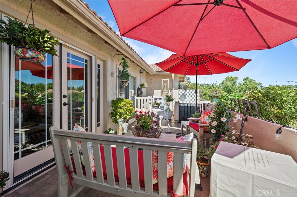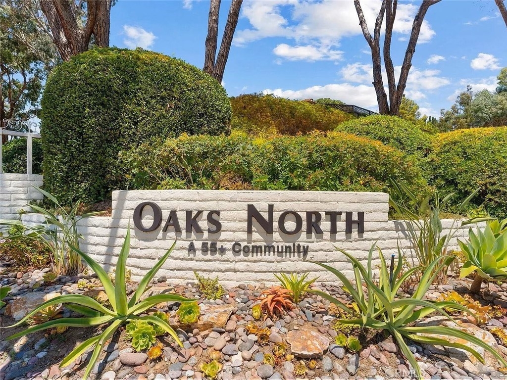 One of a kind, stunning, villa in the Oaks North 55+ active adult community. This home has been renovated and remodeled with taste, quality and functionality. Every inch is used efficiently with elegance. The villa lives larger than the inside space with a generous private front courtyard and intimate back terrace with a view to the hills with pavers. The north/south orientation of the home makes the outside spaces perfect for those outside entertaining and dining experiences without the hot sun beating down late in the day. Perfect for drinks on the terrace and dinner in the courtyard! Completely updated inside and out including high quality wood doors, crown moulding and custom baseboards throughout the home. Vaulted ceilings with large solar skylights, that open/close with a remote, plus real walnut hardwood floors and French doors to the back terrace. Kitchen completely redesigned into a “L” configuration unique to this home that makes it a centerpiece and gathering place in the home. Top of the line stainless appliances including a Wolf steam oven and a GE gas cooktop (unusual in Oaks North Villas), KitchenAid dishwasher and refrigerator with ice maker, plus natural looking and easy care leathered granite countertops and completely custom quality cabinets maximize efficient use of the space. Basic systems have recently been replaced, including high efficiency HVAC system and water heater. Bathrooms have been completely renovated with solid wood wainscot, imported tile and top of the line solid wood cabinetry and high-quality fixtures. The primary bedroom has a vaulted ceiling and includes custom wainscot trim, a high-end ceiling fan/light and black out doors on the sliding door to the back terrace with custom trim. The second bedroom doubles as a guest room/office with built-in armoire and computer station and hidden power outlets to handle all your tech toys. Plus, the same black outdoors with custom trim as the primary bedroom open to the front courtyard. The garage has a huge amount of built-in cabinets and pull downstairs for full usable space above the garage. To make the storage space even better there is a power lift to the attic that will carry up to 250 pounds. No need to balance and carry heavy boxes up/down a ladder or the stairs! And no need to carry a flashlight – the attic is lit by LED lights. This is a unique Oaks North Villa home, for the person who values quality, efficiency and comfort. Don't miss out!