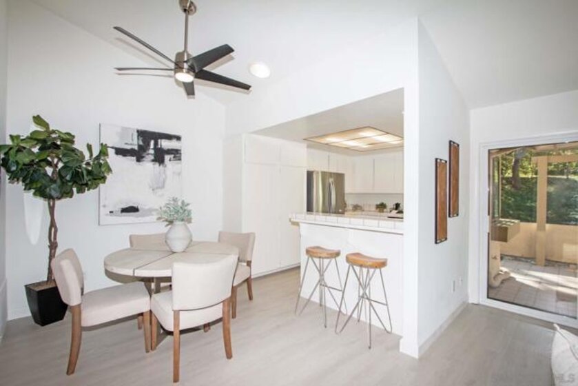 Light, Bright, & Beautiful Retreat! Welcome to this light and bright home perfectly positioned next to a peaceful greenbelt. Solar tubes fill the space with natural light, highlighting the freshly painted interior and brand new wide-plank neutral luxury vinyl flooring throughout. The crisp white kitchen features stainless steel appliances. Dual-pane windows and doors enhance comfort and efficiency, while the cozy living room fireplace creates a perfect spot to relax. Enjoy seamless indoor-outdoor living with a back patio that faces a park-like setting-ideal for morning coffee or evening unwinding. As an end unit, this home offers added privacy and tranquility. Meet friends at the pool, pickle ball court, tennis court, lawn bowling, water aerobics or any of the many activities offered at the Oaks North Community Center. At Oaks North Villas you are not just buying a home but a lifestyle. Oaks North is a 55+ community.
