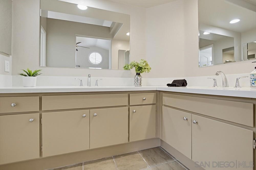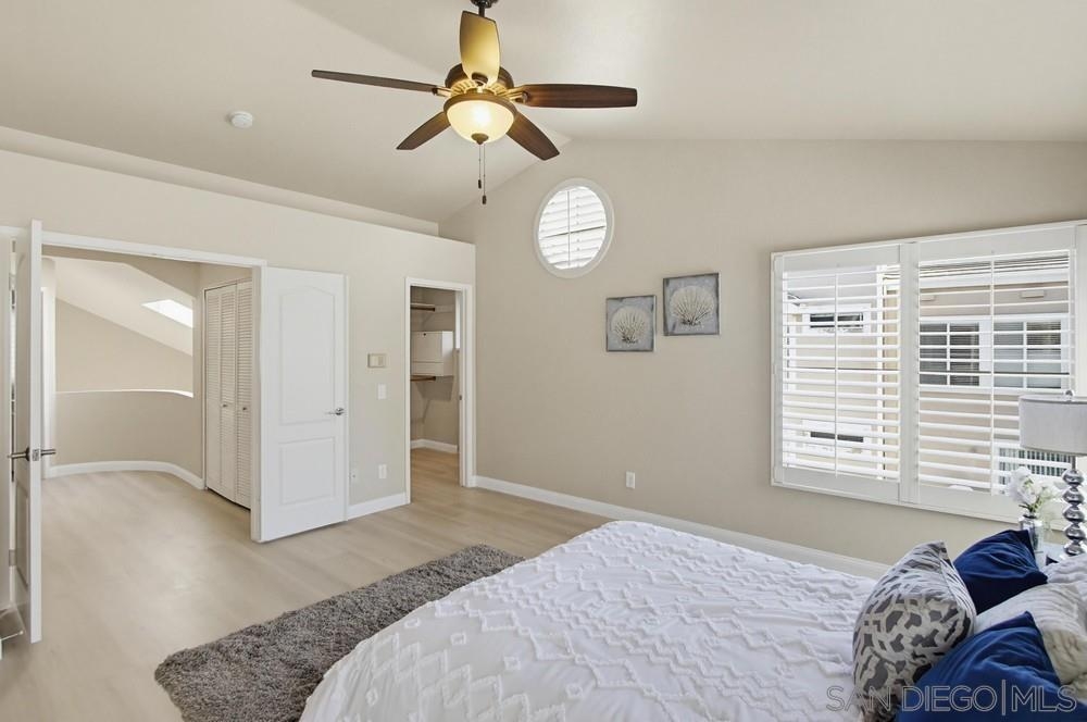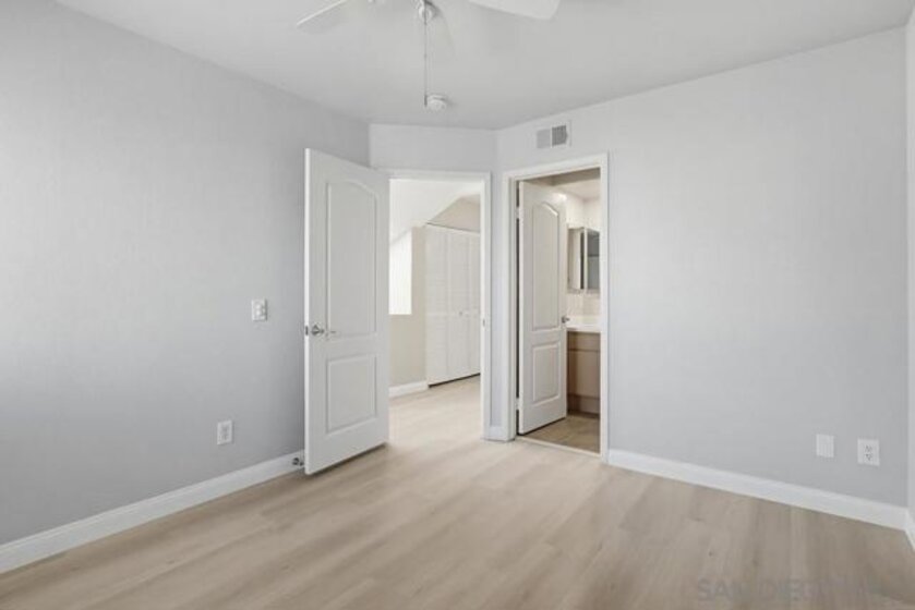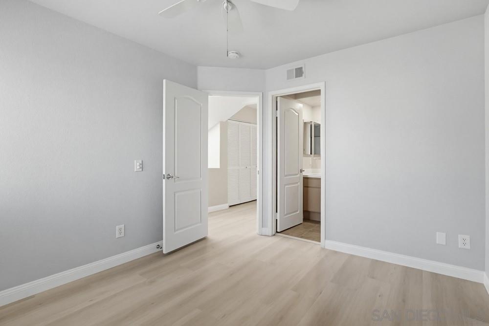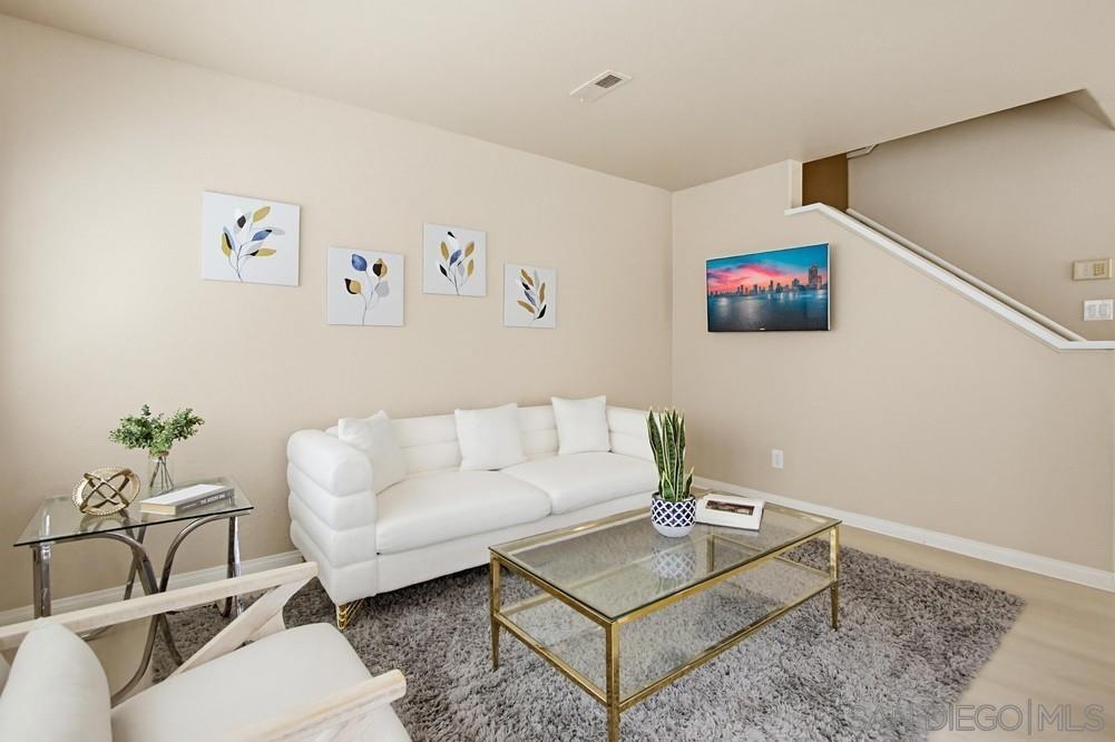 Welcome home to this bright end-unit in the highly coveted Camellia Valley Halcyon community! This 1,604 sq. ft. townhome combines a functional layout with an airy, open feel, highlighted by soaring high ceilings and expansive windows that fill the home with natural light from three sides. The home offers flexible living with a full bedroom and bathroom on the entry level, ideal for a home office, guest suite, or multi-generational living. The kitchen features a brand-new stainless-steel gas range and a high-performance hood with external exhaust, perfect for cooking enthusiasts. Throughout the home, you’ll find luxury vinyl flooring and plantation shutters that add both style and practicality. An oversized patio off the dining area creates a seamless indoor-outdoor flow, ideal for BBQs and entertaining. The spacious primary suite serves as a true retreat with dramatic high ceilings, enhancing its open and relaxing feel. An attached 2-car garage provides convenience along with additional storage space. Located in a prime San Diego pocket, you’re just minutes from parks, shopping, and top-tier education, with assignment to highly rated schools including Carmel Creek Elementary School right across the street. Clean, well-maintained, and attractively priced, this home presents a rare opportunity to move into a premier neighborhood and make it your own.