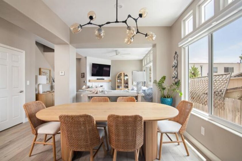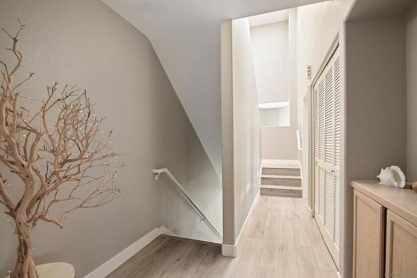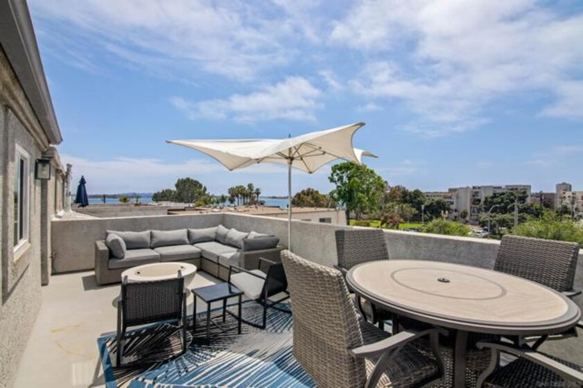 Tucked away in one of Pacific Beach’s most sought-after neighborhoods, Sail Bay, this coastal gem is your ticket to the good life. Quiet, private, and full of style, this west-facing townhome lives like a single-family home—flooded with natural light thanks to big windows and dreamy skylights. Step inside to a bright, open-concept main level where coastal comfort meets thoughtful design. The newly remodeled kitchen shines with sleek custom cabinetry, gorgeous countertops with matching backsplash, and a built-in coffee bar that adds both function and flair. Luxury vinyl flooring flows throughout, durable enough for sandy toes, little feet, or furry friends. The living room centers around a cozy fireplace framed by a beautifully tiled accent wall, creating the perfect spot to unwind. The space transitions seamlessly into the dining area, while a stylish powder bath and a versatile main-level bedroom, complete with a walk-in closet and a built-in Murphy bunk bed. Upstairs, you'll find spacious dual primary suites with en suite bathrooms and a laundry closet conveniently on the same level. The stair case has vaulted ceilings But the real showstopper? The spacious 250 sq ft rooftop deck with panoramic views of Sail Bay and golden sunsets, the perfect place to sip wine, stargaze, or host friends for summer nights under the sky. The well-maintained community shows true pride of ownership and offers two side-by-side parking spots and storage, so beach toys, bikes, and boards all have their place. Only one block from Sail Bay and Fanuel Park. Tucked away in one of Pacific Beach’s most sought-after neighborhoods, Sail Bay, this coastal gem is your ticket to the good life. Quiet, private, and full of style, this west-facing townhome lives like a single-family home—flooded with natural light thanks to big windows and dreamy skylights. Step inside to a bright, open-concept main level where coastal comfort meets thoughtful design. The newly remodeled kitchen shines with sleek custom cabinetry, gorgeous countertops, and a built-in coffee bar that adds both function and flair. Luxury vinyl flooring flows throughout—durable enough for sandy toes, little feet, or furry friends. The living room centers around a cozy fireplace framed by a beautifully tiled accent wall, creating the perfect spot to unwind. The space transitions seamlessly into the dining area, while a stylish powder bath and a versatile main-level bedroom—complete with a walk-in closet and a built-in Murphy bunk bed—make hosting guests or working from home an absolute breeze. Upstairs, you'll find spacious dual primary suites with en suite bathrooms and a laundry closet conveniently on the same level. The stair case has vaulted ceilings But the real showstopper? The spacious 250 sq ft rooftop deck with panoramic views of Sail Bay and golden sunsets—the best place to sip wine, stargaze, or host friends for summer nights under the sky. The well-maintained community shows true pride of ownership and offers two side-by-side parking spots and storage, so beach toys, bikes, and boards all have their place. Location-wise, it doesn’t get better. Just blocks from Fanuel Park, The Catamaran Hotel, and the boardwalk.