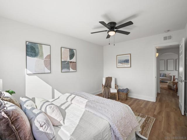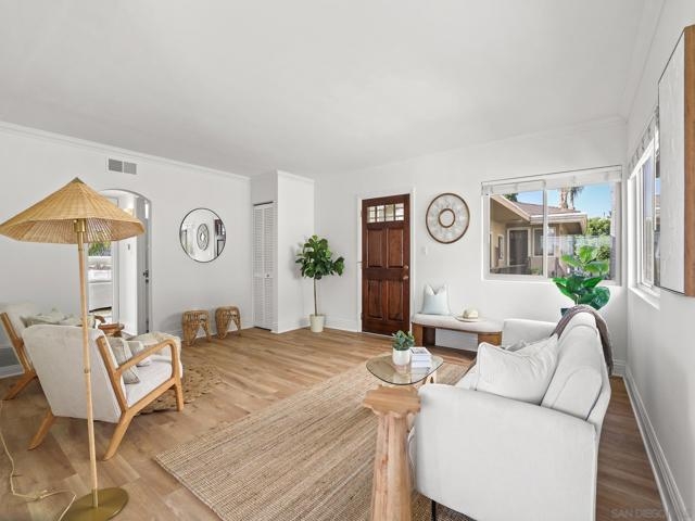 Just blocks from the sand and steps from the best of Pacific Beach, this top-floor, corner-unit condo offers bright, coastal living with no downstairs neighbor. The open layout features fresh paint, updated LVP flooring, and dual-pane windows that welcome natural light and ocean breezes. The kitchen shines with stainless steel appliances, granite countertops, and custom cabinetry. Both bedrooms offer walk-in closets, and the home includes in-unit laundry, a private one-car garage with storage, an additional parking space, and access to a shared storage room. The secure, pet-friendly building features gated entry, a BBQ courtyard, and attractively low HOA fees. Perfectly situated near popular cafés, restaurants, local shops, and entertainment, this well-maintained home is ideal as a full-time residence or turnkey coastal escape. Some additional recent upgrades in the complex include: New roof (2020), New windows on west facing wall (2020), New stucco, west-facing wall (2021) Water heater replacement (2022), Termite treatment (Feb 2023), Fence repairs/replacements (May 2022 & Oct 2024), New water meter (2022)