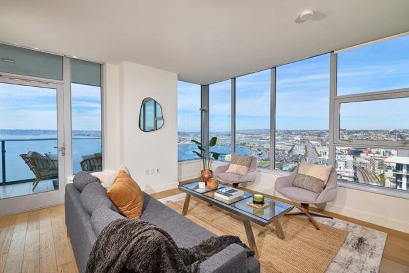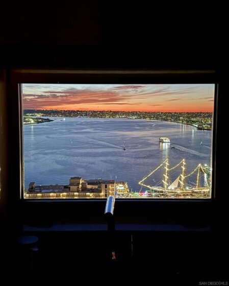 Welcome to elevated coastal living at this stunning northwest corner residence in Savina. Perched high above downtown, this unit showcases breathtaking panoramic views of the San Diego Bay, city skyline, and unforgettable sunsets from nearly every room. Almost floor-to-ceiling windows flood this condo with natural light while framing postcard-worthy scenery. The thoughtfully designed interior features a chef’s gourmet kitchen with premium finishes, ideal for both entertaining and everyday living. A rare , hard to come by and highly desirable floor plan in Savina building with very spacious but practical balcony, this condo boasts two oversized walk-in closets—an exceptional find in urban high-rise living—providing abundant storage and comfort. Perfectly positioned in one of downtown’s most coveted locations and neighborhoods, this residence seamlessly blends luxury, functionality, and iconic views, offering an unparalleled lifestyle above it all. Welcome to elevated coastal living at this stunning northwest corner residence in Savina. Perched high above downtown, this unit showcases breathtaking panoramic views of the San Diego Bay, city skyline, and unforgettable sunsets from nearly every room. Almost floor-to-ceiling windows flood this condo with natural light while framing postcard-worthy scenery. The thoughtfully designed interior features a chef’s gourmet kitchen with premium finishes, ideal for both entertaining and everyday living. A rare , hard to come by and highly desirable floor plan in Savina building with very spacious but practical balcony, this condo boasts two oversized walk-in closets—an exceptional find in urban high-rise living—providing abundant storage and comfort. Perfectly positioned in one of downtown’s most coveted locations and neighborhoods, this residence seamlessly blends luxury, functionality, and iconic views, offering an unparalleled lifestyle above it all.