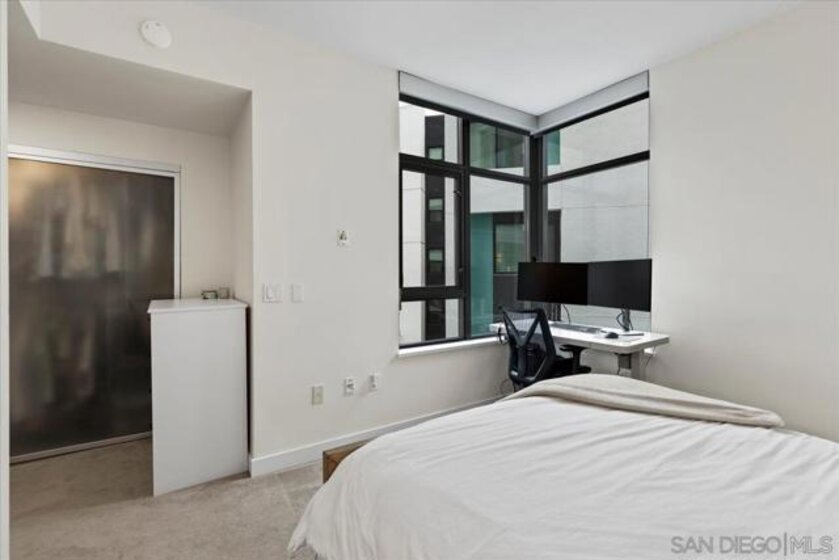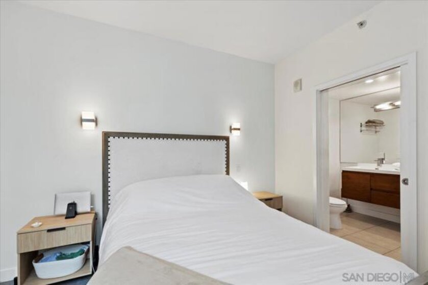 Set within the coveted desirable northwest corner of Aria in the serene enclave of Cortez Hill, this sophisticated residence delivers an exceptional blend of modern elegance and effortless livability. Sun-filled interiors unfold across a thoughtfully designed open floor plan, anchored by a beautifully updated kitchen featuring waterfall-edge quartz countertops, premium stainless steel appliances, abundant cabinetry, and a generous breakfast bar ideal for entertaining. Expansive windows bathe the living space in natural light and extend seamlessly to a spacious private balcony—perfect for morning coffee, sunset cocktails, or al fresco gatherings against the backdrop of city energy. Privacy and comfort are artfully balanced with a split-suite layout, offering two well-appointed primary retreats on opposite sides of the home. The main suite showcases dramatic corner windows, a walk-in closet, and a sleek ensuite bath with dual vanities and a walk-in shower, while the secondary suite provides a private ensuite ideal for guests or extended stays. Thoughtful upgrades include motorized living-room shades, full-size in-unit laundry, and two assigned garage parking spaces. Residents of Aria enjoy resort-inspired amenities including a 70-foot lap pool, spa, state-of-the-art fitness center, elegant resident lounge, on-site management, and secured FOB entry. Ideally positioned moments from Balboa Park, Little Italy, Petco Park, the Embarcadero, and the Gaslamp Quarter—with easy access to San Diego International Airport—this is elevated urban living at its finest and a must see!