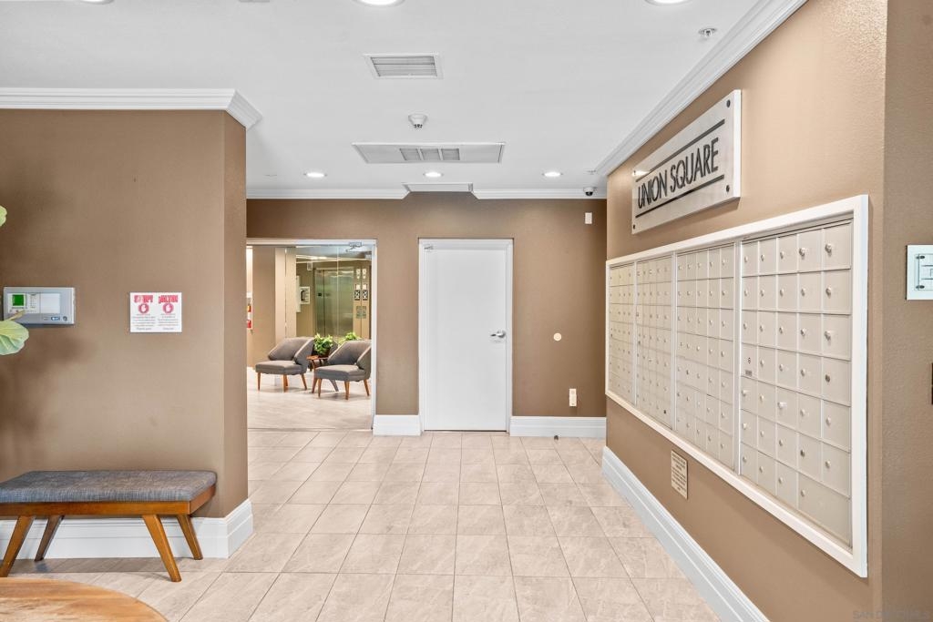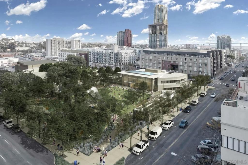 This beautifully remodeled and spacious home features a highly desirable split floor plan that ensures privacy and versatility—perfect for accommodating roommates, hosting guests or creating a dedicated home office. The brand-new gourmet kitchen features Classic Calacatta quartz countertops, a Kohler farmhouse sink and KitchenAid stainless steel appliances. The open-concept living area is large and inviting, enhanced by plantation shutters and new LED lighting throughout. Both bathrooms have been stylishly renovated, and new plush carpeting adds warmth and comfort throughout the bedrooms. Stay cool year-round with the new 2-ton HVAC system and Nest thermostat, offering modern energy efficiency. This condo offers ample storage with multiple closets and cabinets including two large walk-in closets adjacent to the bedrooms. With a Walk Score of over 90, Union Square is located across the street from San Diego City College with convenient access to major freeways: 163, 5, and 94. Adding to the neighborhood’s safety and peace of mind, the San Diego Police Department (SDPD) headquarters is also located directly across the street. Union Two blocks away a 4.1 acre East Village Green park is under construction and a wonderful addition to the neighborhood! The development will include a community center, children’s park, off-leash dog areas, cafés, plazas, multiple lawn areas, a performance pavilion and underground parking. Union Square Condominiums deliver exceptional value with below-average HOA fees. Amenities include a fitness center, pool, sauna, clubhouse with a pool table, and courtyards with BBQs. The HOA also covers key utilities such as water and trash, adding even more value for homeowners. An on-site property manager ensures smooth day-to-day operations, while multiple communal EV charging stations make powering your electric vehicle easy.