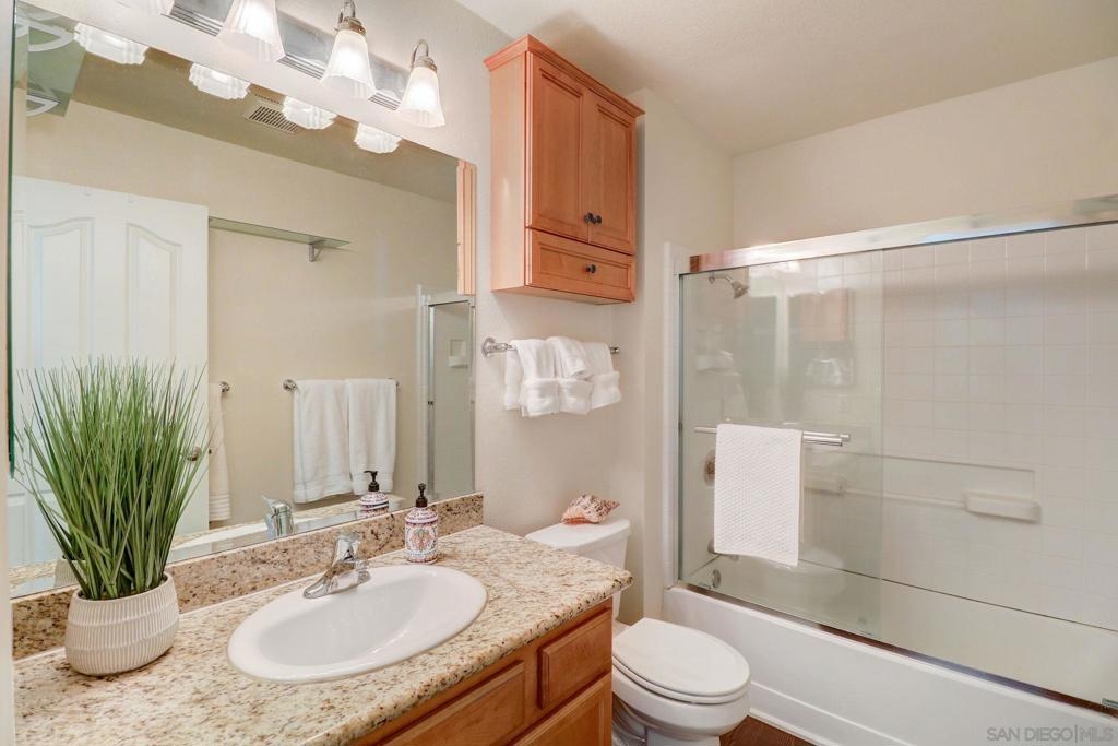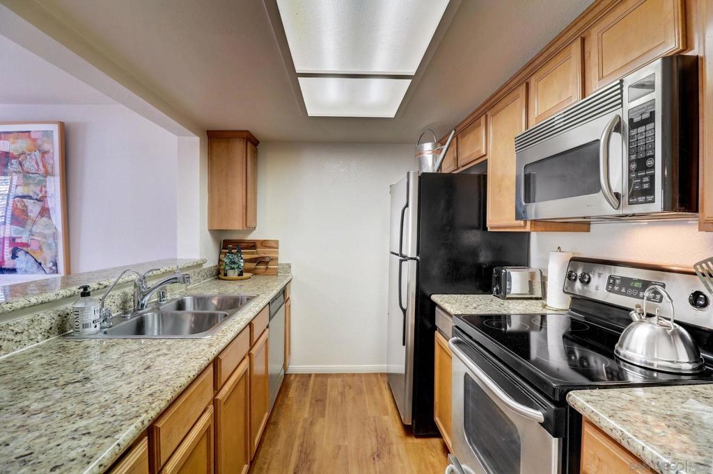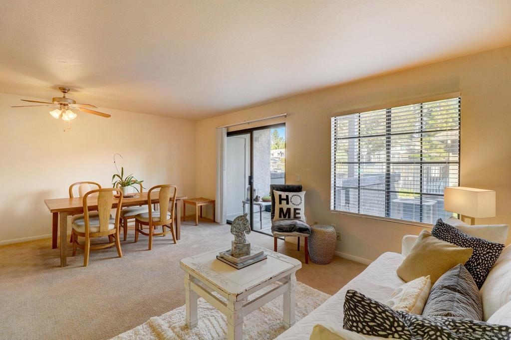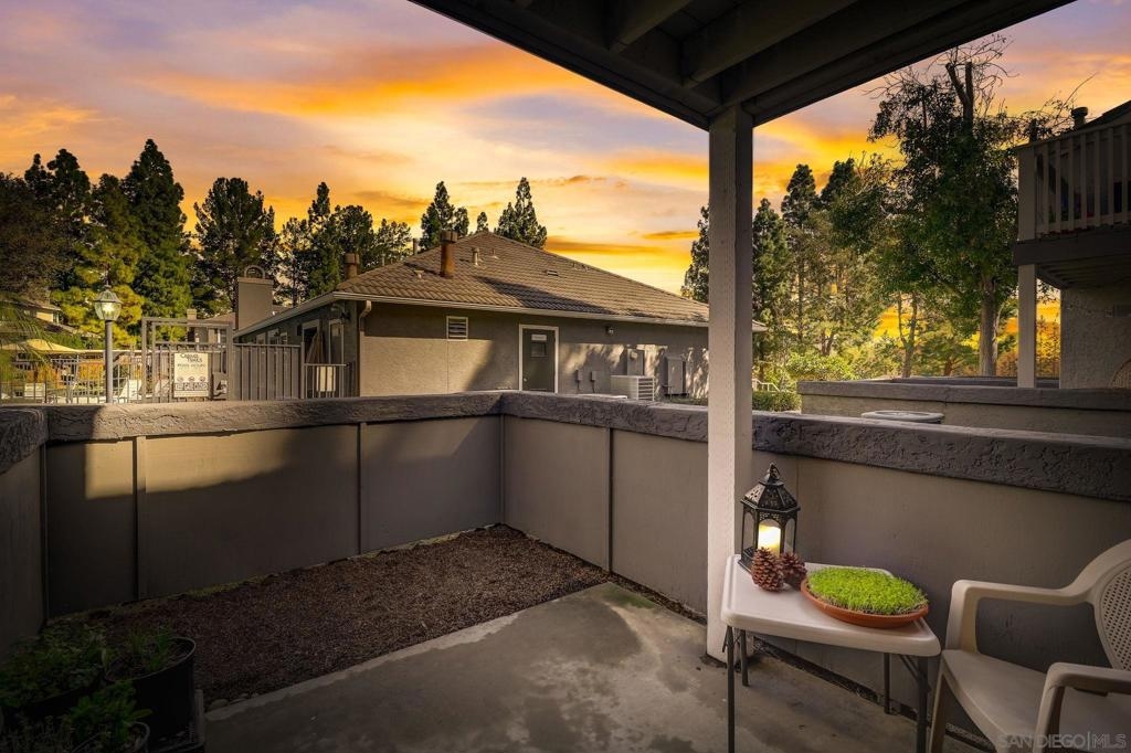 Step inside this well-maintained ground level move-in-ready condominium, an excellent choice for those seeking a comfortable and spacious residence. Appreciate the inviting open floor plan, featuring generous living spaces and a seamless living/dining area flow. The kitchen is elegantly equipped with stainless steel appliances, granite countertops, wooden cabinetry, a built-in microwave, and a stove. Right by the dining area, you can enjoy your meals indoors or outdoors in the expansive patio, it's perfect for entertaining or enjoying the fresh air overlooking the pool. The main suite is equally impressive, featuring two large closets, a well-designed bathroom with a tub/shower combo, and granite vanity countertops. Abundant storage space is available and added conveniences include in-unit laundry. Moreover, you'll enjoy what Carmel Trails community has to offer. The resort-style complex provides a variety of amenities, including an outdoor heated pool, heated spa, tennis courts, clubhouse, gym, and barbecue grills. You don't have to worry about your water, sewer and trash bills because the HOA has that covered. One carport parking space is included. Conveniently situated in the highly sought-after Rancho Bernardo neighborhood, within the Poway School District, this home is a short distance from walking and biking trails, parks, nature, restaurants, shopping, wineries, local shops, supermarkets, and cafes. With easy access to the 15 freeway, this distinctive home is truly one-of-a-kind and won't be available for long. Come see and schedule your showing today!