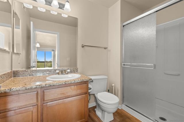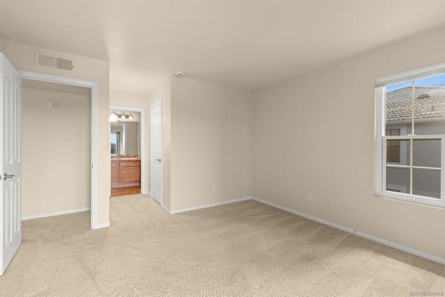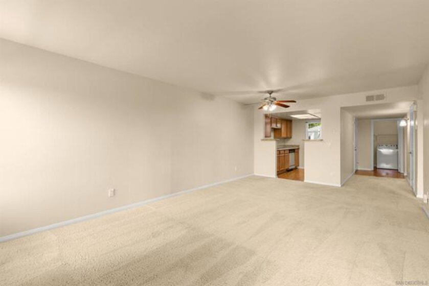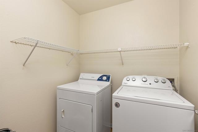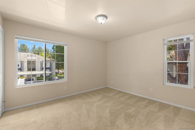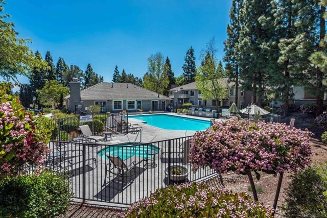 Welcome to your dream starter home or savvy investment opportunity at Carmel Mountain! This charming 2-bedroom, 2-bathroom end unit is nestled in the desirable Carmel Trails Complex at the end of a cul-de-sac, offering a harmonious blend of comfort and convenience. As you enter, you're greeted by an open & spacious living space, complete with a cozy fireplace and abundant natural light streaming through large windows and multiple glass sliding doors, which opens onto the balcony. The kitchen boasts bullnose edge countertops and a pantry closet with built-in shelves, complementing the modern appliances, including a refrigerator. Both the master and second bedrooms feature spacious walk-in closets; the master bedroom closet has custom built-ins. Both bedrooms have en suite bathrooms, with the master bedroom offering a spacious walk-in shower. For your convenience, this end unit includes indoor laundry facilities with a side-by-side washer and dryer, ensuring household tasks are a breeze. The amenities of the Carmel Trails Complex are at your fingertips: stay active in the fitness center, relax in the pool or spa, enjoy a barbecue with friends, or engage in a friendly game on the tennis court. Two assigned parking spaces ensure your vehicles are accommodated—one covered and one uncovered. All these perks come with a low HOA fee of just $342, allowing you to enjoy all these benefits without breaking the bank! Parking Space C-153 & U153