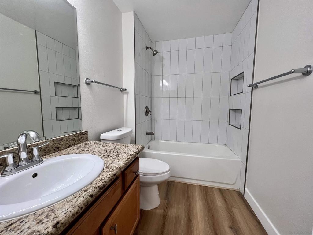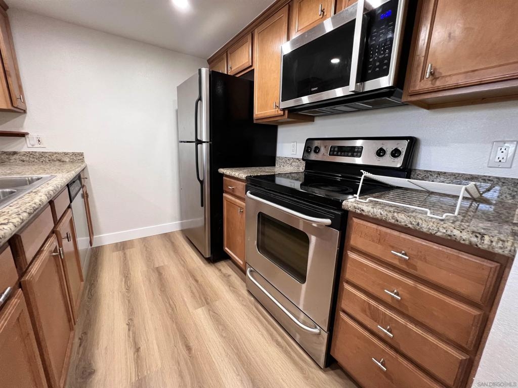Must see move-in-ready 1bed/1 bath condo in the highly desirable Carmel Trails community! Spacious open floor plan, w/ combo living/dining area, freshly installed vinyl plank floors, and remodeled bathroom and fresh paint. Stackable washer dryer inside unit. New shower/tub/fixtures, loads of closet space throughout. This ground floor condo offers a private patio w/generous storage closet, assigned parking directly in front of the unit & POWAY schools!