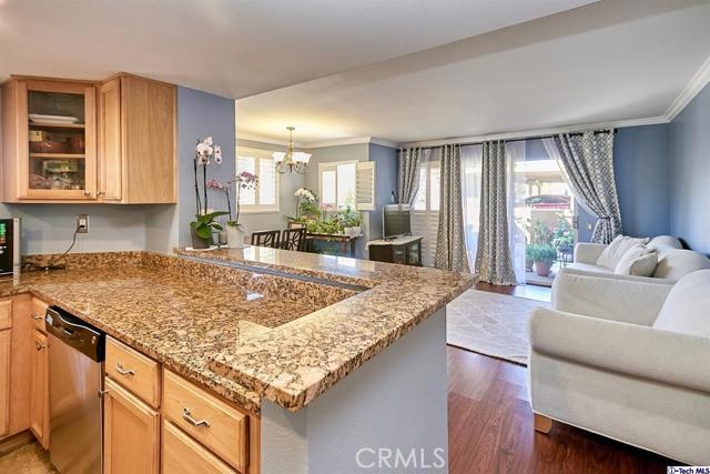 Beautiful and well-maintained ground floor corner unit in Rancho Bernardo's Villa Taviana! This turn-key home features recent upgrades such as granite kitchen countertops, stainless steel appliances, plantation shutters, laminate flooring, and freshly painted walls. The living room sliding glass door opens up to a spacious wraparound stucco walled patio. The community offers resort-style amenities including a huge pool, jacuzzi, fitness center, tennis courts, community BBQ area, playground, rec room, and electric vehicle charging stations. It's walking distance to award-winning Poway schools, and close to parks, shopping centers, and the 15 freeway. A great home in a great location!