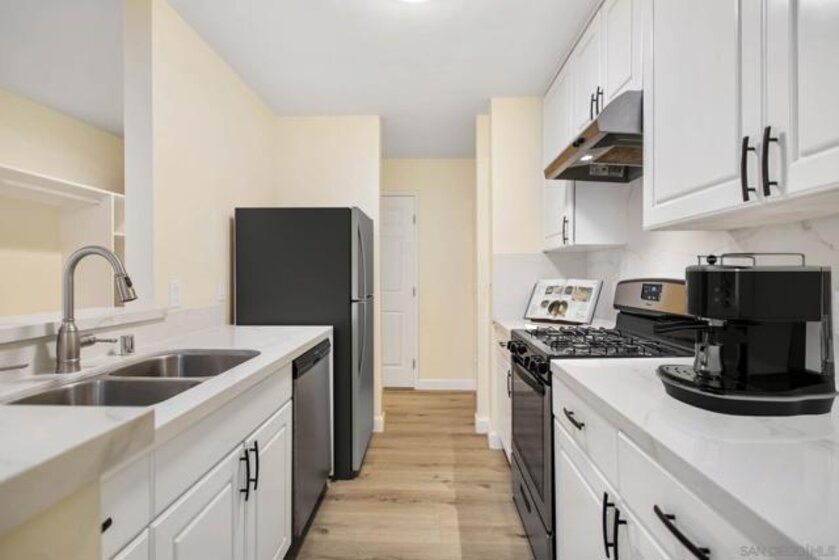 Welcome to Mission Village! This move-in ready top-floor unit features vaulted ceilings, LVP flooring, and an updated kitchen with quartz counters and stainless steel appliances. The remodeled bathroom includes custom tile, new lighting, and a dual vanity setup, with one sink conveniently located outside the main bath—perfect for busy mornings. Relax by the cozy fireplace or step out onto the private balcony off the living room, ideal for enjoying your morning coffee or evening breeze. The home also offers ample storage and TWO parking spaces, one space in the garage, just take elevator down for easy access. Enjoy a wide array of community amenities including a pool, spa, BBQ area, tennis and basketball courts, gym, sauna, dog run, and community laundry room. Perfectly located minutes from San Diego’s best beaches, River Trail Bike Path, airport, Downtown, Hillcrest, and UCSD Medical Center. You’re also near Mission Valley’s vibrant shopping and dining scene.