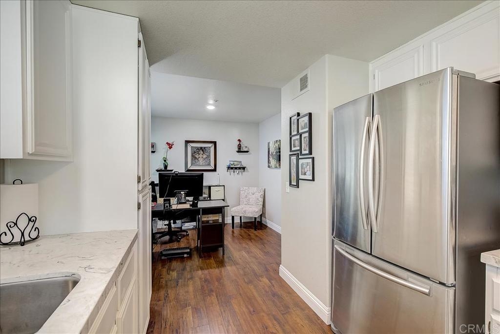 2 bedroom + nook/office, 2 full bathrooms, 2 car garage, upstairs condo. Only 3 steps at entrance and no steps inside. $60,000 in Upgrades - New windows, new wood floors, new 51/2" baseboards, New paint, new stainless steel gas stove, New microwave, new dishwasher, new refrigerator, new granite counters, new dual pane windows, new wood like blinds, New LED lights, NEST thermostat New water heater. Bathrooms upgraded - new granite counters, new cabinets, mirrors, lights and faucets. Keyless entry and remote garage door pad. Great location in Bernardo Heights and close to shopping, stores, freeways, schools and churches. Poway Unified School District. No age restrictions. HOA includes water, cable, landscaping, trash, security, exterior maintenance including roof and membership in Bernardo Heights Community center - 2 pools, child pool, 4 tennis courts, 3 basketball courts, gym, and more. Mira La Paz also has a gym and pool and spa.