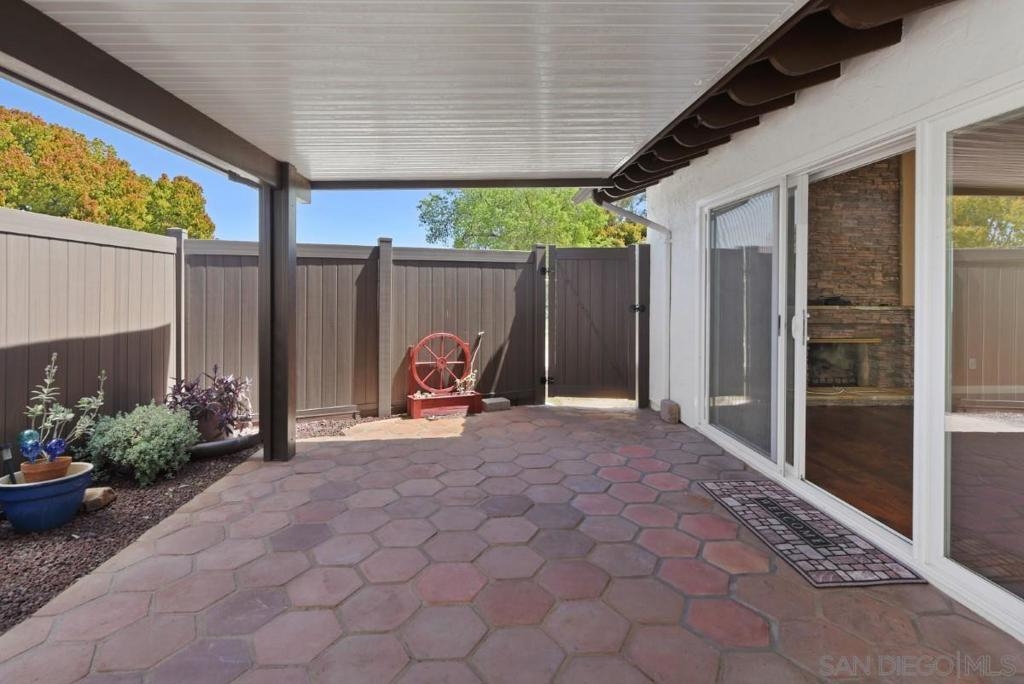 Beautifully upgraded home in coveted Seven Oaks of Rancho Bernardo 55+community. This is a one story corner unit with large patio in a great, private location, tucked into a back corner of a cul-de-sac. Dual-pane vinyl windows. New upgrades include remodeled kitchen custom maple cabinets, granite counters, 24x12 natural stone like tiles, wood like flooring in Hall, living room/dining & bedrooms, remodeled Fireplace, recess lighting in Kitchen, Stainless steel sink. Both baths have new designer square sinks & cabinets, decorator mirrors and lighting, refaced bath tubs & much more, Inside Washer & Dryer, assigned carport parking.