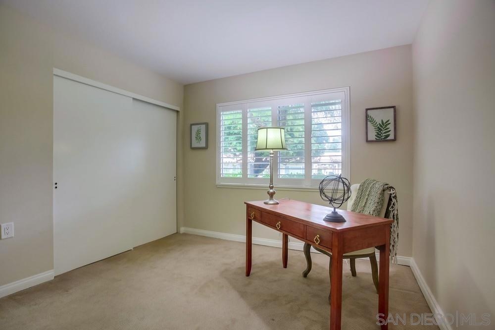 Single story in a premium location with parklike greenbelt views. Highly desirable floorplan with two additional enclosed patio areas providing ample living space. Inviting living room with fireplace and dining area. Bright kitchen with white cabinets, updated countertops and walk in pantry. Plantation shutters, upgraded carpet and tile floors. Charming screened in front patio with double door front entry. Enclosed sunroom with windows and glass sliding door offering numerous options for usage. Very quiet and peaceful, private location in the complex with nearby walking paths. Generous sized storage closet with full sized washer/dryer in carport area. Short distance to the Seven Oaks Community center which has a clubhouse, pool/spa, library, arts, crafts & community events for its residents. Seven Oaks is one of Rancho Bernardo's premier 55+ communities. The Seven Oaks Community Center offers residents numerous community activities, a library, pool, spa, shuffleboard, exercise room and so much more. Close to Rancho Bernardo grocery stores, shopping, restaurants and only 1 mile from the RB Inn. The community events and social opportunities in Seven Oaks make this neighborhood one of the most sought after in the area. Welcome Home!