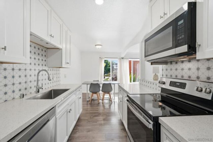 3.250 % VA assumable loan. Welcome home to this freshly painted, upgraded end-unit located in the gated Harbor Vista community. This desirable one-bedroom, one-bath residence offers modern comfort and convenience, featuring an in-unit washer and dryer, newer kitchen appliances, recessed lighting, granite countertops, and a stylish decorative backsplash. Residents enjoy a host of community amenities, including an assigned parking space, two heated pools with spas, a picnic area, laundry facilities, and a clubhouse. HOA fees conveniently cover water, hot water, trash, security, and pool maintenance. Ideally situated just steps from Euclid Avenue’s restaurants, banks, gym, and everyday conveniences, with easy access to CA-94. Located less than 10 minutes from Downtown and Mission Valley, and just minutes from major military bases—this home offers the perfect blend of comfort, privacy, and unbeatable accessibility.